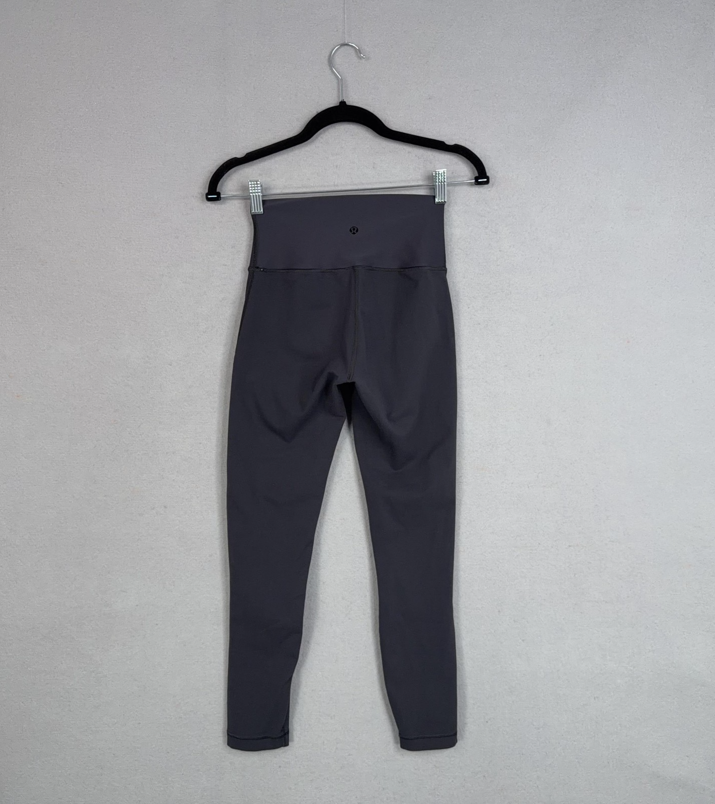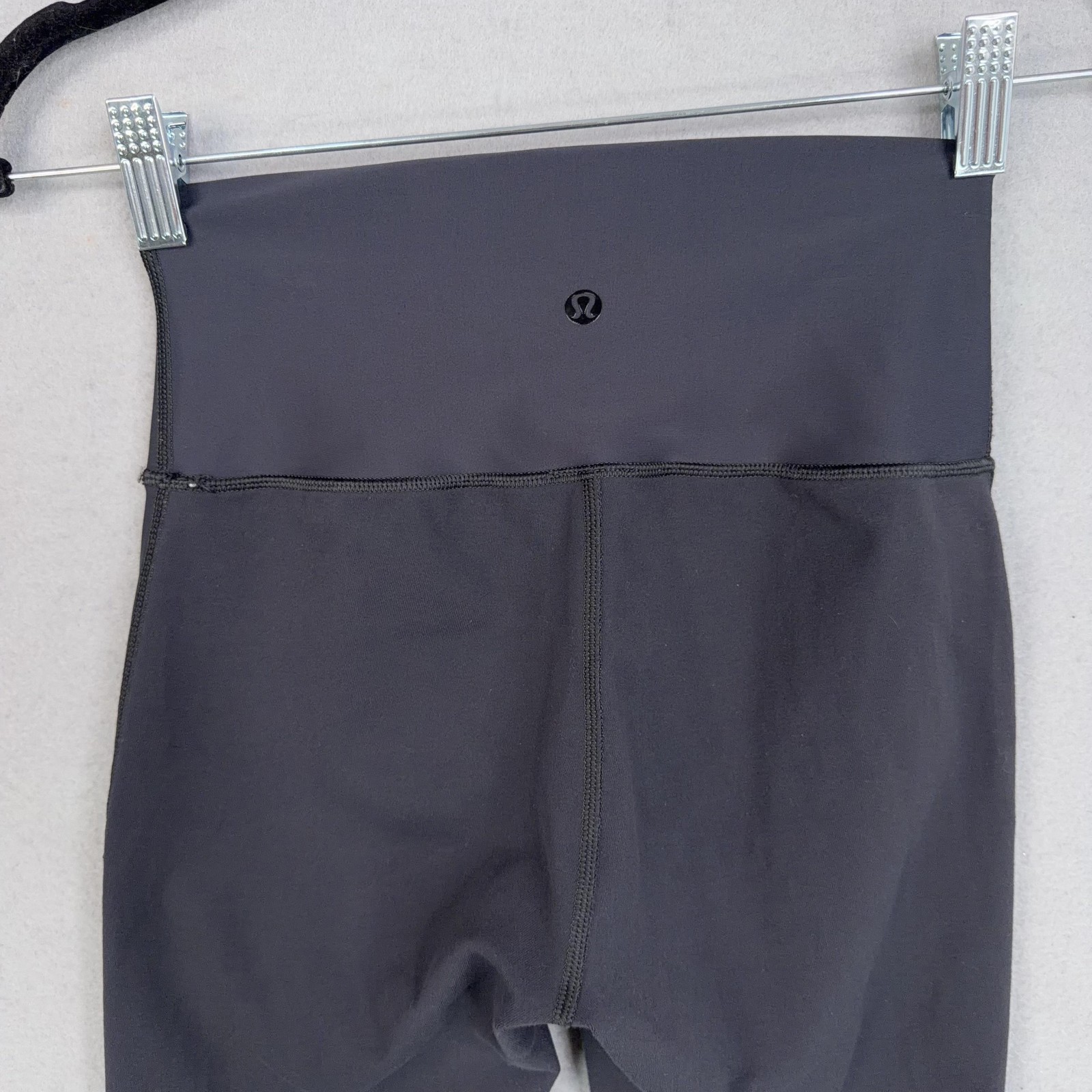 Lululemon Leggings Womens 4* Dark Gray High Rise Full Length Yoga Pants Athletic Pre-owned with minimal signs of wear; fabric is clean, stretchy, and free of stains, snags, or pilling. Seams and hems are intact with no stretching or loose threads, and the reflective back logo is crisp. Retail hang tags are not included. Brand: Lululemon Style: Womens fperformance leggings with a high-rise wide waistband and skinny leg silhouette. Color: Solid dark charcoal gray. Size: Womens 4* (approximate Lululemon sizing based on garment proportions). Material: Smooth synthetic stretch knit performance fabric; exact fiber content and care details are not visible in the photos. Details: Pull-on high-rise waistband that can be worn tall or folded over, flatlock seaming for comfort, streamlined design without exterior pockets, and a small reflective Lululemon logo centered at the back waistband. Occasion: Ideal for yoga, studio workouts, athleisure outfits, and everyday casual wear. 24367 Measurements: Previous washings may change sizing on the tag. Refer to photos above for all measurements. Compare our measurements to one of your favorite garments. Measurements are approximate. All items are bagged and sealed after being photographed, then stored in a smoke free environment. Washed per eBay standards. I carefully package and ship daily. Contact me with any questions. Thanks