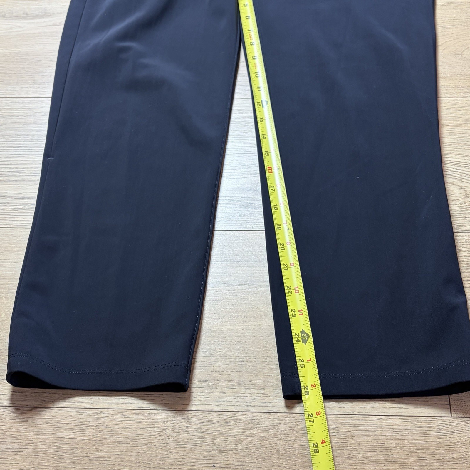 The Lululemon On The Move Pants in size X 8, black stretch pants with a 26" inseam, are perfect for travel and various athletic activities. Made from a blended fabric with features like wrinkle-free, stretchy, and moisture-wicking, these pants offer comfort and flexibility. The tailored fit, straight leg style, and solid black color make them versatile for different occasions, from casual outings to weddings or business events. With a focus on athleisure and fitness, these pants are ideal for activities like yoga, running, or walking, making them a stylish and functional addition to your wardrobe.