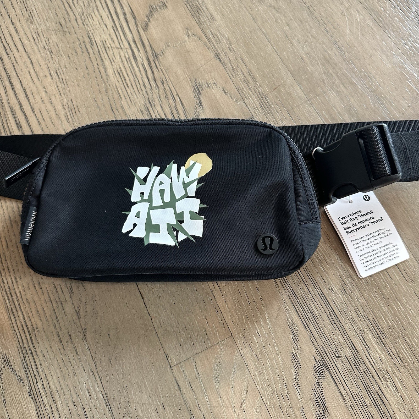 Classic Lulu belt bag but with limited edition Hawaii logo on the center. Solid black interior with mesh pockets on each side.