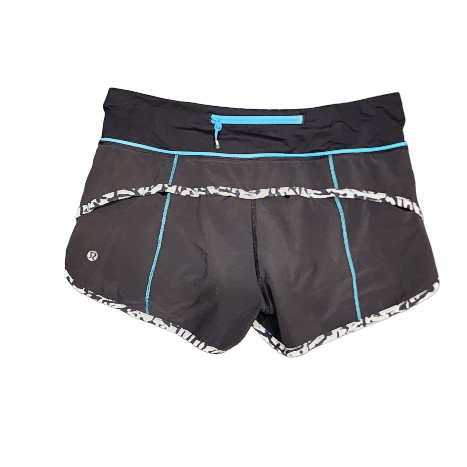 Lululemon Run Speed Short 4-way Stretch Black Brushed Animal Print Sz 4 Release Date: 4/2015 Style Number: W7578S Material: Swift Ultra, Luxtreme Light four-way stretch Swift fabric lightweight wicks sweat away from your skin wide smooth waistband vents at the back for breathability continuous drawcord zipper pocket on the back of the waistband liner keeps you covered and helps your shorts stay put chafe-resistant flat seams designed for running slim fit low rise inseam: 2 1/2" Excellent Pre Owned Condition Inv# 12-028