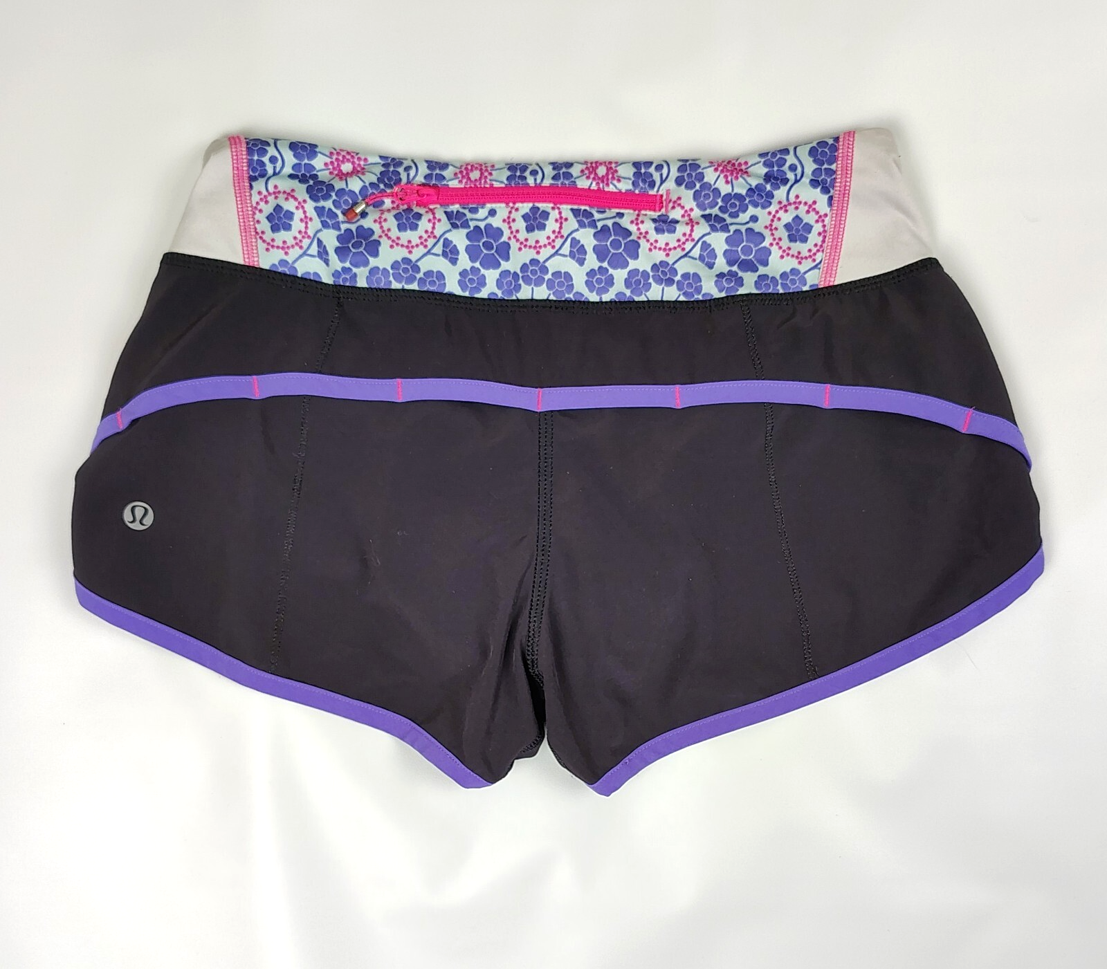 Lululemon Run Speed Shorts Size 2 Black Floral Color Block Waist Band Lined In Very Good Pre-Owned Condition Measurements in flat Inseam:2.5 inches Waist:13 inches Rise:9.5 inches Leg Opening:11 inches Please check the measurements & conditions in photos and I recommend you to compare with your favorite shorts! Pre-owned clothing may have a variance in size and fit. If you have any questions, please let me know. Smoke Free, Pet Free Home Visit my store for new listings! Thank you for looking!