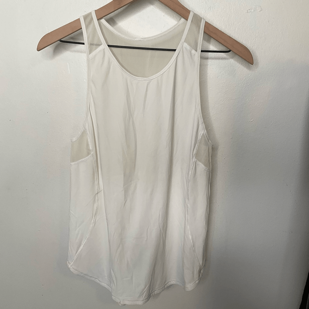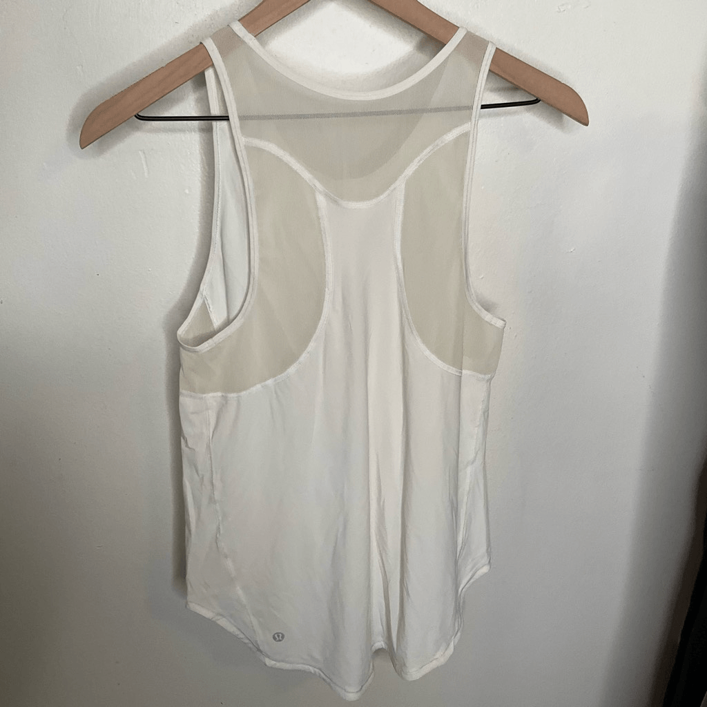 Lululemon Sculpt Tank Top Scoop neckline Mesh detail Sleeveless Lululemon symbol on back bottom Color: Off White Size: 6 Excellent Condition