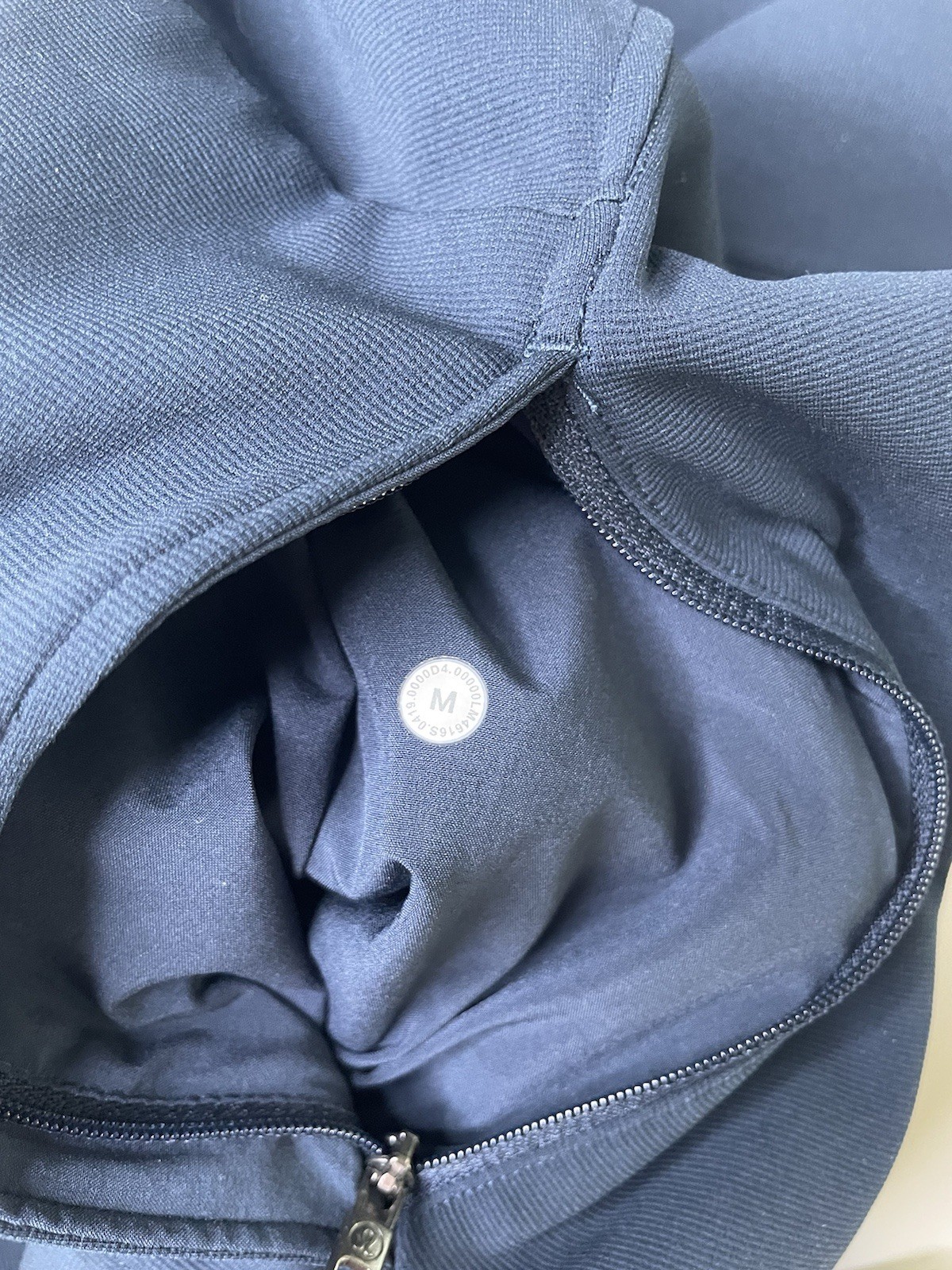 This jacket is a game-changer! The fit is perfect—roomy but not bulky, and the fabric is super lightweight yet durable. The zipper glides smoothly, and the pockets are just the right size for essentials. The True Navy color is versatile, and the recycled materials make it eco-friendly. Super comfy for workouts or casual wear, and it looks sleek. Highly recommend!