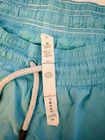 These Lululemon running shorts for women are perfect for any athletic activity. The spandex, nylon, and polyester blend material makes them lightweight, stretchy, and quick-drying. The drawstring closure and elastic waist provide a comfortable fit, while the moisture-wicking and breathable features keep you cool and dry during your workout. These shorts also have pockets, making it convenient for carrying small essentials, and are machine washable for easy care. The solid pattern and teal-blue color make them a stylish addition to your activewear collection. Perfect for gym and training, cross-training, CrossFit, running, and jogging. Measurements: Waist: 30” expandable Inseam: 6” Length: 16” FLAT FEE NEXT DAY SHIPPING WITHIN THE US