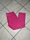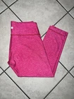 This Lululemon Wunder Under 21” Crop II leggings in heathered jeweled magenta pink color and size 6 is perfect for your next workout or yoga session. The blended fabric is breathable, lightweight, and stretchy for maximum comfort. It features a pull-on closure and a skinny leg style with a 21-inch inseam and 27-inch waist size. The leggings are easy to care for and machine washable. It is a regular fit and perfect for the summer and spring season. The solid pattern and colorful theme make it a stylish addition to your activewear collection. Whether you're going to the gym or doing yoga, these Lululemon leggings will keep you comfortable and stylish.