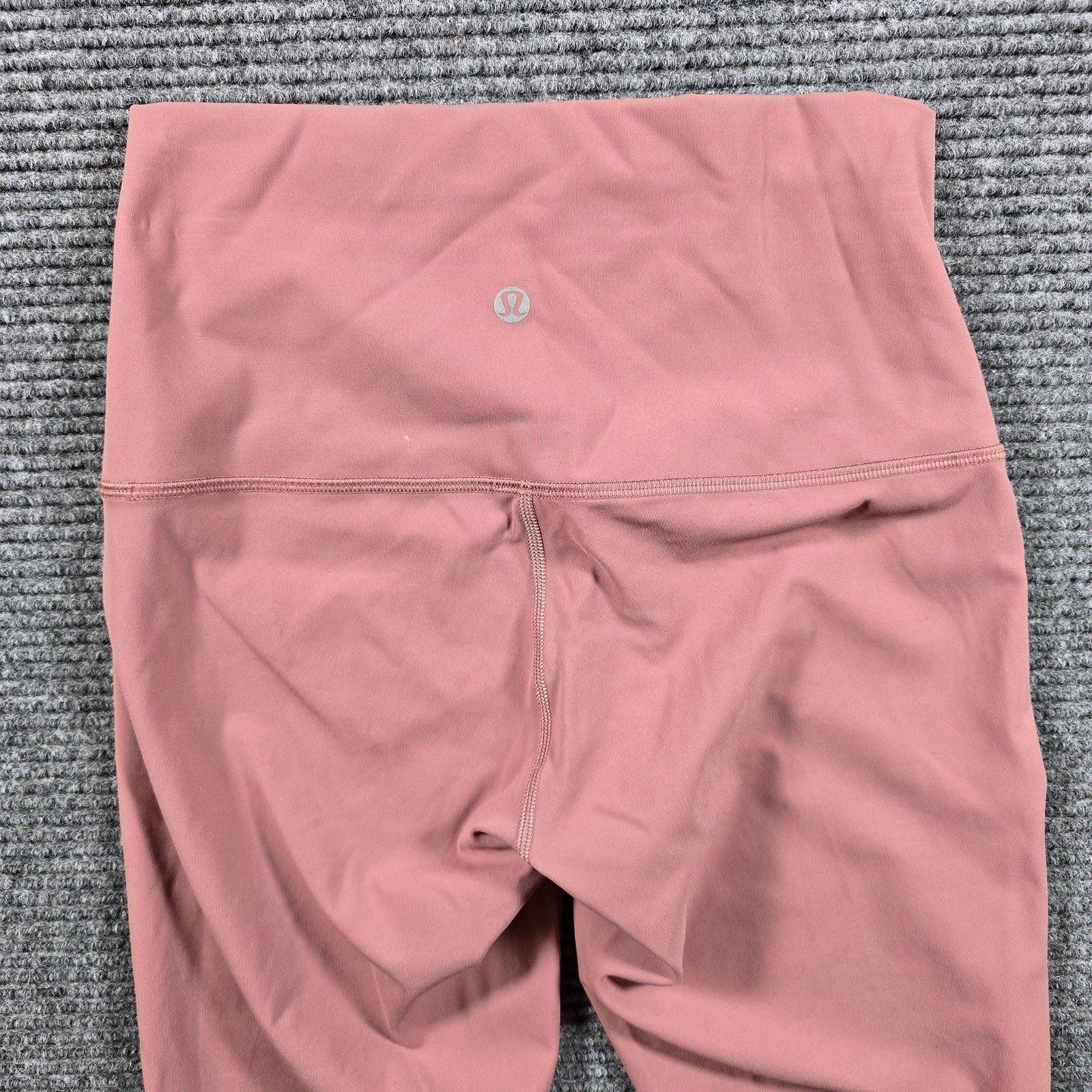 Lululemon Wunder Under High-Rise Crop leggings in a soft dusty rose/pink colorway with scalloped ankle hems. Made with supportive Full-On Luxtreme fabric, these crops are designed to stay put during yoga, training, or everyday wear. A flattering high-rise fit with sleek seams and a clean, minimalist look. Color may vary slightly from photos due to lighting and monitor settings. Details Brand: Lululemon Model / Style: Wunder Under HR Crop 23" *Scallop Color: Pink / Dusty Rose Tag Size: 4 Fabric: 69% Nylon, 31% Lycra® Elastane (Full-On Luxtreme) Condition: Pre-owned, good condition with light lint/wear visible Key Note: High-rise waist, scalloped hem, smooth compressive fabric Inseam: ~23"