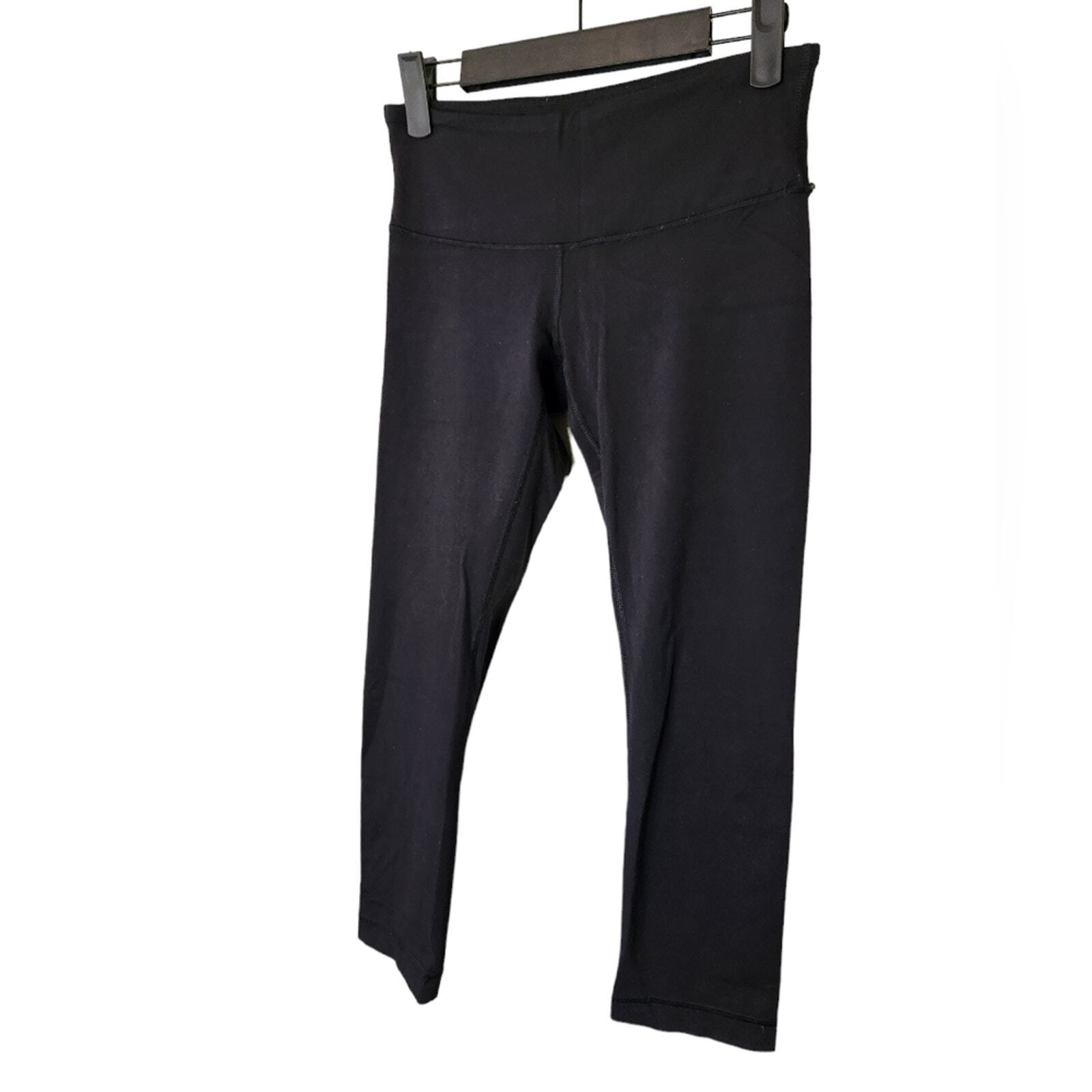 low rise wunder under crop leggings from Lululemon excellent condition. no stains, holes or pilling. logo looks new! size 4 Laying flat measurements in inches Waist 12 Rise 7 Inseam 22