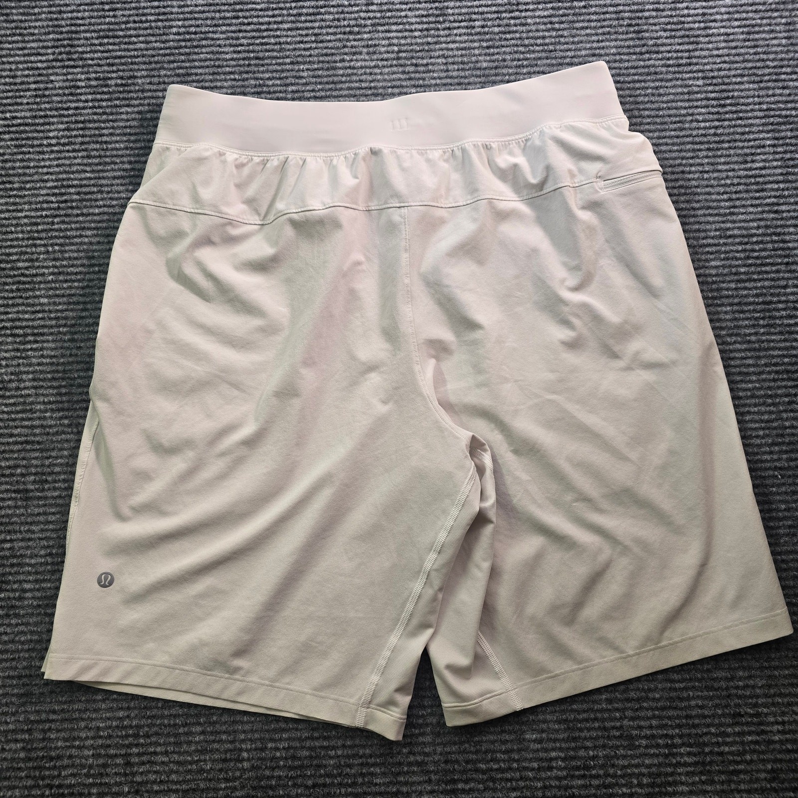 Lululemon Zeroed In linerless shorts designed for training, lounging, or everyday wear. Soft, smooth performance fabric with a relaxed athletic fit and internal drawstring for comfort and adjustability. Clean ivory color that pairs easily with tees or hoodies—great for gym sessions, travel, or casual days. Color may vary slightly from photos due to lighting and monitor settings. Details: Brand/Model: Lululemon Zeroed In Short Style: Linerless Athletic Short Color: Ivory (off-white) Size: Tag size L Inseam: 7" (style length) Waist: Elastic waistband with drawstring Pockets: Side pockets Fabric: Performance stretch fabric Condition: Good pre-owned condition; no holes or stains noted Key Note: Linerless version