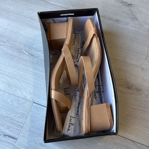 These Lulus Fallyn Mules are a stylish and instantly chic footwear choice, designed to easily complement any outfit. These high-heel mules feature a chic square-toe silhouette and an open-toe design with a slender toe band and a matching vamp strap, all crafted from lightly textured faux leather. The simple slide-on design is finished with a comfortable 2" wrapped block heel, making them a perfect low-height option for all-day wear. The hazelnut color is a rich, neutral tone that pairs well with numerous colors and patterns year-round. Condition: New in Box Size: 9 (True to size) Color: Hazelnut Material: Lightly textured faux leather (All Man-made materials) Keywords: Lulus, Fallyn, Block Heel, Mules, Naked Sandals, Faux Leather, Hazelnut, Nude Heels, High Heel, Square Toe, Cocktail, Size 9, New, Slide Sandals, Low Heel