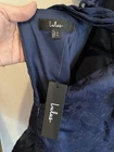 The product is a Lulu’s navy blue jacquard floral puff sleeve mini dress in size XL. This dress is designed for women and features a floral pattern with short puff sleeves, a short dress length, and is made of jacquard fabric. The dress has a feminine and stylish look, perfect for a casual or dressy occasion. *This can fit Medium up to XL - please pay careful attention to measurements below) Measurements Pit to pit: 20 in Waist: 17 in Length: 32 in Condition: new with tags. 251909