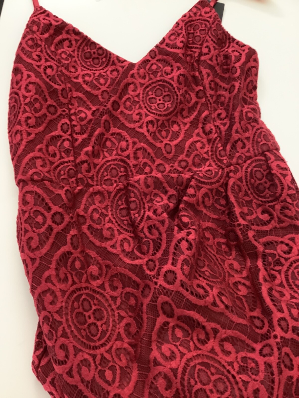 This dress is absolutely stunning! The lace trim adds such a cute, fairy-like touch, and the fit is perfect—flattering without being too tight. The spaghetti straps and lining make it comfortable, and the vibrant red color is eye-catching. Great quality for the price, and it arrived brand new with tags. Love it!