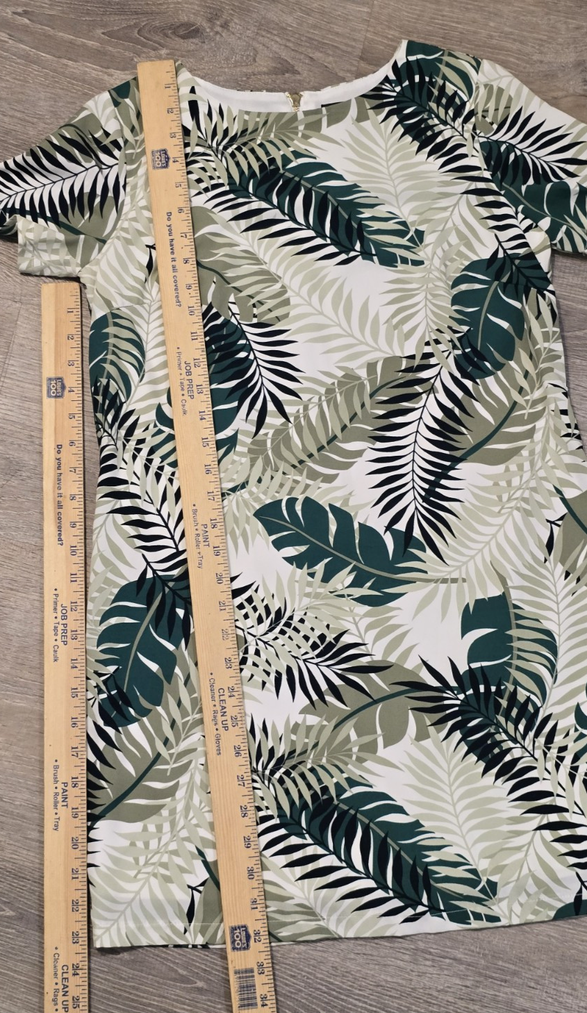 This Lulus shift dress is a must-have for any fashion-savvy woman. The dress features a beautiful floral pattern in green and ivory, making it perfect for any spring or summer occasion. The dress is made of polyester and is easy to care for with just a simple hand wash. The dress has a zip closure and a short length, making it perfect for a day out with friends or a casual date night. The dress is a size small and is designed to fit a regular size type. It is a great addition to any wardrobe and can be paired with heels or flats depending on the occasion.
