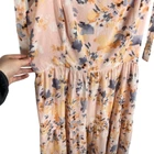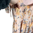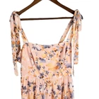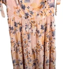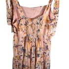 Great Pre-Owned Condition (see pics for details). No holes, rips or stains. Multicolor floral print Colors - pale pink with peach, blue, white and brown Adjustable shoulder tie straps Smocked back bodice Princess seams on front bodice Concealed side zipper closure Fully lined Crinkle look to chiffon Shell - 100% polyester Lining - 95% polyester, 5% spandex Hand wash Style profile - fairy, romantic, boho, bohemian, prairie, pastel, wedding guest, bridesmaid, bridal shower, summer Approximate flat lay measurements: Top of bodice to bottom hem length - 52" Shoulder to bottom hem length - 59" (tied as in the picture - will be adjusted according to height) Pit to pit width - 19" (no actual pit so it's measured side to side of bodice) Empire waist - 15.5" Please compare measurements to something you already own to verify size and fit We are happy to answer any questions! We ship the next business day!