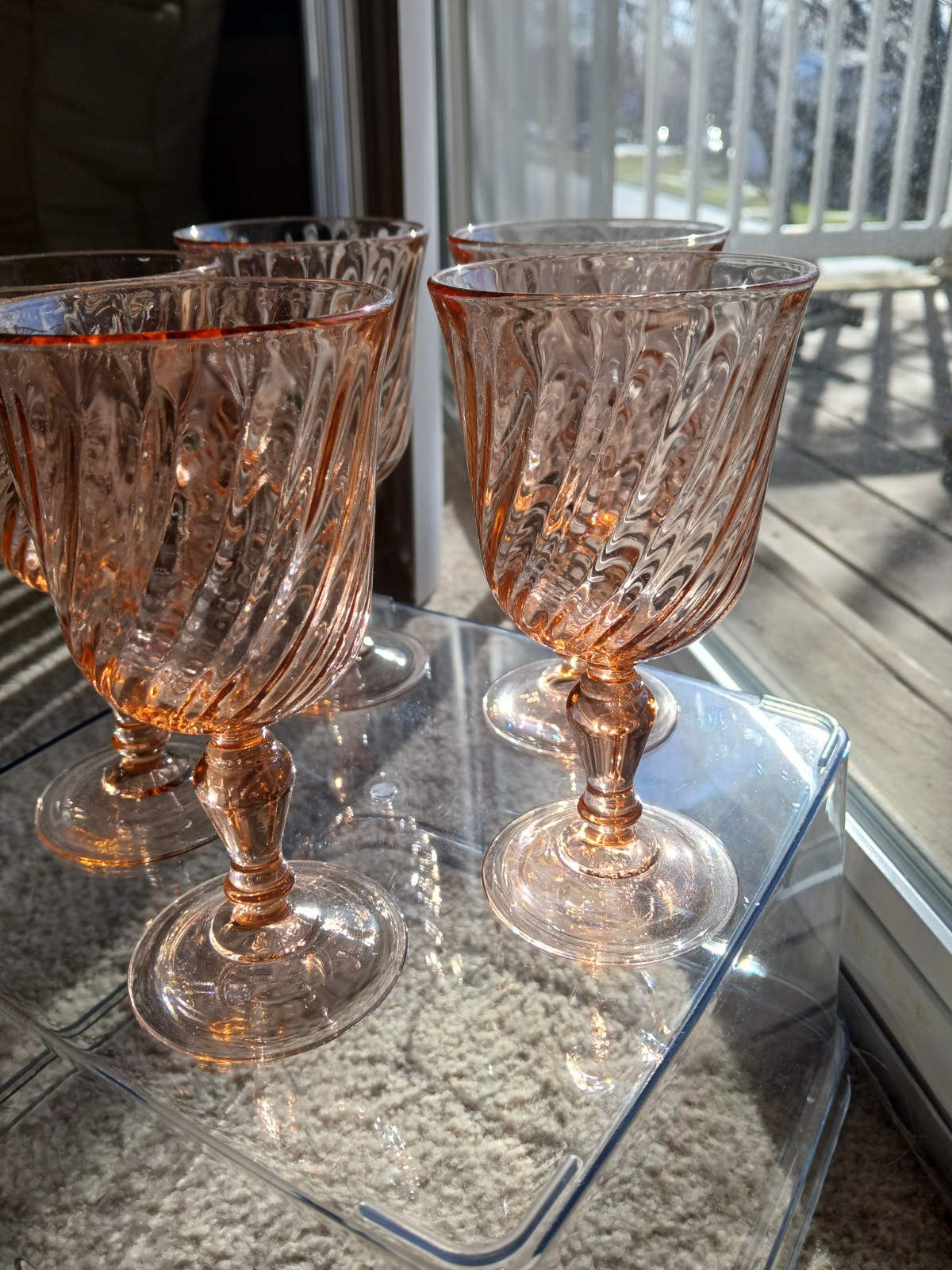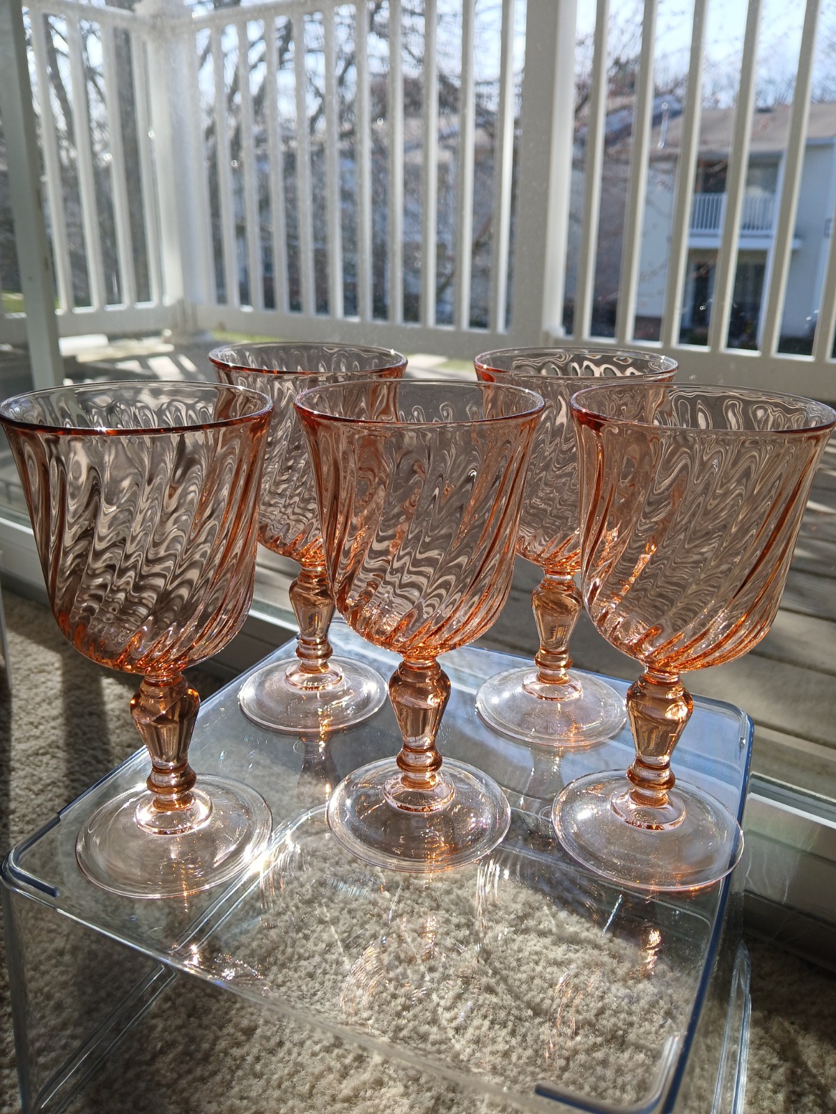These are vintage Luminarc Rosaline pink swirl optic glass goblets, produced in France around the 1970s and 1980s. The pattern is commonly known as "Rosaline". It features a distinctive pink tint with a swirling optic pattern in the bowl and a contoured stem. These glasses were manufactured by the French companies Arcoroc and Luminarc, both associated with Cristal D'Arques-Durand. Pristine condition with no cracks, chips or scratches.