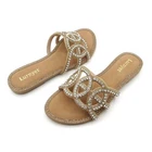 Women's Crystal Embellished X-Band Slide Sandals Rhinestone Design Slipper