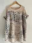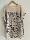 This Lungo L'Arno blouse is a must-have for any wardrobe. The leopard print linen fabric is breathable and perfect for summer, fall, and spring. The collarless top has a round neckline and short dolman sleeves, making it suitable for travel, workwear, and casual occasions. The pullover closure adds convenience, while the woven fabric type gives it a unique texture. The blouse is made in Italy and is available in size 3X. The garment care instructions are to dry clean only. The blouse is a basic style with a plus size type and is suitable for women. Great pre owned condition. Measurements Chest 28” Length 30.5”
