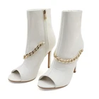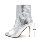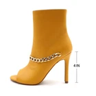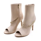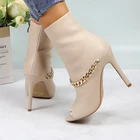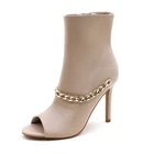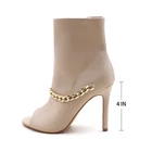 Description: The Lurnyet Women's Chain Detail Peep Toe 4 Inch High Heel Ankle Boot is a stylish and versatile bootie perfect for various occasions such as parties, casual outings, or formal events. The ankle shaft style, peep toe design, and stiletto heel add a touch of sophistication and femininity to any outfit. Made from synthetic materials with a resin outsole, these boots are durable and comfortable for all-day wear. The zip closure and standard shoe width make them easy to slip on and off. Whether it's winter, summer, fall, or spring, these boots are a chic addition to any wardrobe. Payment Information: We Accept PayPal We Accept Credit Card via PayPal Shipping Information: We provide Same Day FREE SHIPPING domestically within the U.S.A USPS Priority (2-3 business days) & USPS Priority International (14 days with tracking) We reserve the right to charge additional shipping fee for reship items due to wrong shipping address provided during checkout. All orders before 5PM EST will ship out same day!, Monday - Friday Ships Same Day with TRACKING! Refund & Return Policy: We offer a 30 day return policy on all items purchased from us. Please contact us within 30 days after receipt of the item for a return. Do not ship the item back to us without contacting us first. Return shipping is responsibility of buyer. The Lurnyet Women's Chain Detail Peep Toe 4 Inch High Heel Ankle Boot is a stylish and versatile bootie perfect for various occasions such as parties, casual outings, or formal events. The ankle shaft style, peep toe design, and stiletto heel add a touch of sophistication and femininity to any outfit. Made from synthetic materials with a resin outsole, these boots are durable and comfortable for all-day wear. The zip closure and standard shoe width make them easy to slip on and off. Whether it's winter, summer, fall, or spring, these boots are a chic addition to any wardrobe.