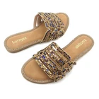 Description: These are Lurnyet women's slip-on sandals adorned with sparkling crystal rhinestones in multiple colors, perfect for various occasions like activewear, parties, or casual outings. The sandals feature a solid pattern, flat heel style, and comfortable polyurethane lining and insole. They are designed with a rubber outsole for added durability and are available in US sizes 5.5 to 10. Ideal for wearing during the winter, summer, fall, or spring seasons. Payment Information: We Accept PayPal We Accept Credit Card via PayPal Shipping Information: We provide Same Day FREE SHIPPING domestically within the U.S.A USPS Priority (2-3 business days) & USPS Priority International (14 days with tracking) We reserve the right to charge additional shipping fee for reship items due to wrong shipping address provided during checkout. All orders before 5PM EST will ship out same day!, Monday - Friday Ships Same Day with TRACKING! Refund & Return Policy: We offer a 30 day return policy on all items purchased from us. Please contact us within 30 days after receipt of the item for a return. Do not ship the item back to us without contacting us first. Return shipping is responsibility of buyer.