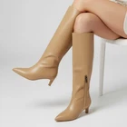 Description: The Lurnyet Women's Knee High Boots in black leather with a pointed toe and 2-inch heel are a stylish and versatile choice for various occasions. These slip-on boots feature a zip closure and are designed for a comfortable fit with a regular calf width. The stiletto heel and solid black color make them a chic option for formal events or casual outings, while the rubber outsole provides durability and traction. Perfect for winter and fall, these boots are a fashionable addition to any woman's wardrobe. Payment Information: We Accept PayPal We Accept Credit Card via PayPal Shipping Information: We provide Same Day FREE SHIPPING domestically within the U.S.A USPS Priority (2-3 business days) & USPS Priority International (14 days with tracking) We reserve the right to charge additional shipping fee for reship items due to wrong shipping address provided during checkout. All orders before 5PM EST will ship out same day!, Monday - Friday Ships Same Day with TRACKING! Refund & Return Policy: We offer a 30 day return policy on all items purchased from us. Please contact us within 30 days after receipt of the item for a return. Do not ship the item back to us without contacting us first. Return shipping is responsibility of buyer.