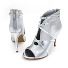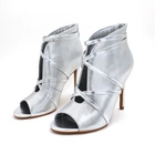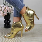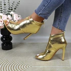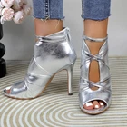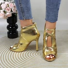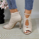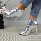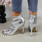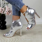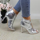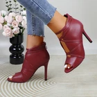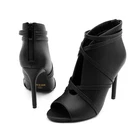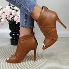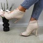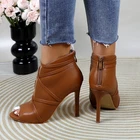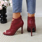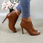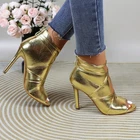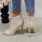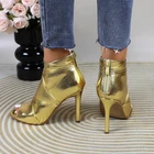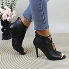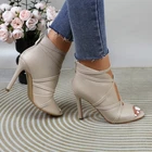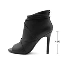 Lurnyet Women's Chain Detail Peep Toe 4 Inch High Heel Ankle Boot