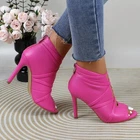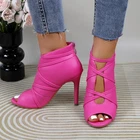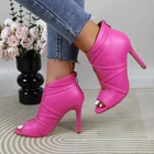 Description: The Lurnyet Women's Strappy Peep Toe 4 Inch High Heel Ankle Boot is a stylish and versatile addition to any woman's shoe collection. With a peep toe design and stiletto heel, these boots are perfect for formal occasions like weddings or parties. The pink color adds a fun and feminine touch, while the ankle shaft and zip closure provide a comfortable and secure fit. Made from synthetic materials and featuring a resin outsole, these boots are durable and easy to maintain. Perfect for any season, these Lurnyet boots are a must-have for any fashion-forward woman. Payment Information: We Accept PayPal We Accept Credit Card via PayPal Shipping Information: We provide Same Day FREE SHIPPING domestically within the U.S.A USPS Priority (2-3 business days) & USPS Priority International (14 days with tracking) We reserve the right to charge additional shipping fee for reship items due to wrong shipping address provided during checkout. All orders before 5PM EST will ship out same day!, Monday - Friday Ships Same Day with TRACKING! Refund & Return Policy: We offer a 30 day return policy on all items purchased from us. Please contact us within 30 days after receipt of the item for a return. Do not ship the item back to us without contacting us first. Return shipping is responsibility of buyer. The Lurnyet Women's Strappy Peep Toe 4 Inch High Heel Ankle Boot is a stylish and versatile addition to any woman's shoe collection. With a peep toe design and stiletto heel, these boots are perfect for formal occasions like weddings or parties. The pink color adds a fun and feminine touch, while the ankle shaft and zip closure provide a comfortable and secure fit. Made from synthetic materials and featuring a resin outsole, these boots are durable and easy to maintain. Perfect for any season, these Lurnyet boots are a must-have for any fashion-forward woman.