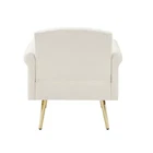 Specifications Place of Origin #originPlace# Main Color Off White Main Material Velvet Filler Foam Dangerous Goods #dangerFlag# Dimensions & Weights Assembled Length (in.) 32.60 Assembled Width (in.) 24.40 Assembled Height (in.) 32.60 Weight (lbs) 38.50 Product Features This velvet armchair makes the household environment of small space living more optional. Suitable for any apartment or studio to improve the comfort of life and work. Durably crafted with velvet and 4 gold metal legs, this armchair fuses comfort and style that will last in your living space for years to come . Contemporary design with tufted back & seat , well-distributed stitching makes it more comfortable. With the help of detailed instructions , you can assemble it easily . Description Products Information : Products chair Upholstery Material: velvet Upholstery Colour: off white Seat & Back Fill Material: foam Frame Material: Solid + Manufactured Wood Seat Construction: foam Assembly Required: yes