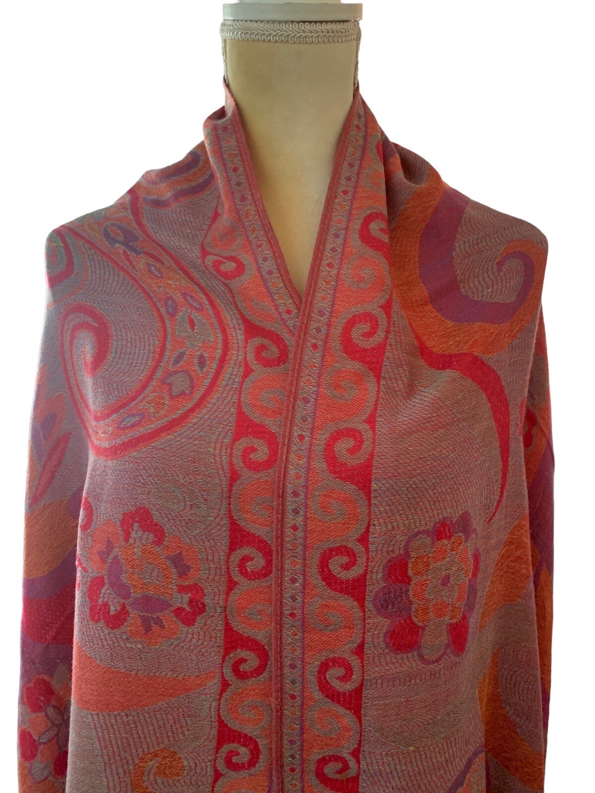 Stunning, Fashionable 100% Cashmere Wrap / Scarf. Size. Length- 70". Width- 28" Features & Accents: Muted Colors of Red and Purple, Fringed, Paisley & Floral Design, Beautifully Soft Nice For Autumn. Condition. Pre owned, Vintage. Very nice, clean condition. Estate Sale Find. Smoke Free Home. Same day shipping if purchased by 3:00 PM, EST. International Sales Ship through Ebay International Shipping Program. Free Returns. We truly try to disclose all information on items we list. However if we miss something, please contact us before leaving negative feedback and allow us to resolve the problem or issue a returns. Your choice. Thank you.
