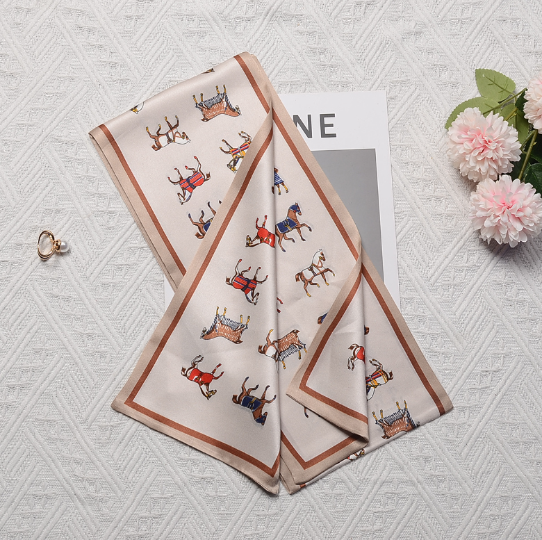 $ 11.88New Boutique 100% Crepe De Chine Silk Printing Hand Rolled Collar Scarf 70cm: