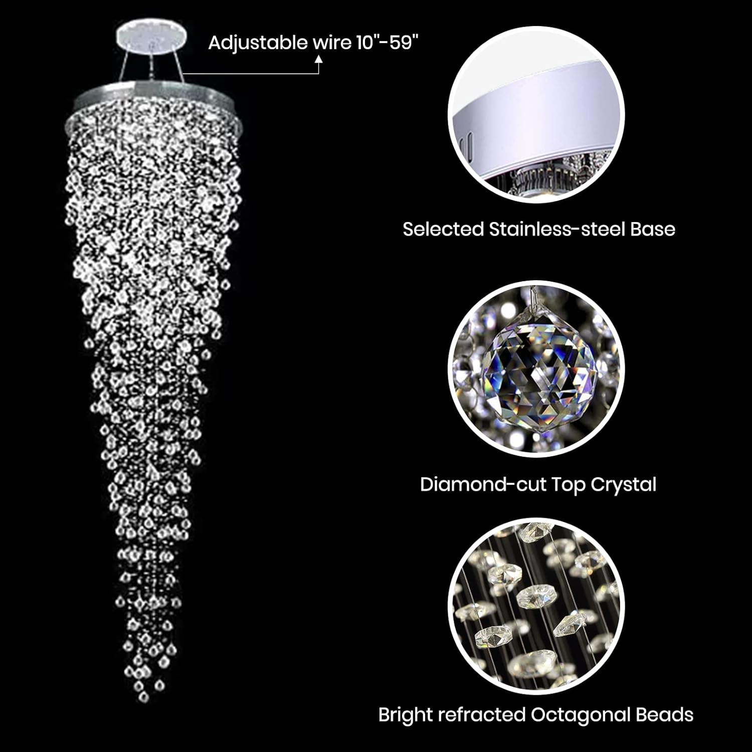 Store New Arrivals Add to Favorite View Feedback Contact Luxury 12-Light Crystal Chandelier for High Ceilings, 32" Dia, Foyer Fixture Description Light Source Type LED Item model number AU88094 Style Modern Number of Items 1 Power Source Corded Electric Fixture Type Flush Mount Number of Light Sources 12 Control Method Touch Embellishment Crystal Theme Fantasy, Floral, Love Batteries Included? No Lighting Method Downlight Mounting Type Ceiling Mount Maximum Compatible Wattage 40 Watts Controller Type Push Button Unit Count 1.0 Count Room Type Entryway, Living Room, foyer, hallway, lobby Assembly Required Yes Installation Type Semi Flush Mount Material Crystal, Metal Collection crystal chandelier Efficiency High Efficiency Switch Type Dimmer Finish Type Polished Specific Uses For Product Lighting, decoration Included Components Light kit inlcuded, Mounting Hardware, Set of crystal strands Indoor/Outdoor Usage Indoor Brightness 1500 lumens Light Color white Water Resistance Level Not Water Resistant Batteries Required? No Warranty Type Lifetime Item Weight 25 pounds Light fixture form Chandelier Special Features Adjustable Color Temperature, Dimmable Special Feature Adjustable Color Temperature, Dimmable Part Number AU88094 Shade Color clear Color Temperature 4000 Kelvin Color Silver Is Discontinued By Manufacturer No Wattage 36 Watts Bulb Base GU10 Shape Round Voltage 120 Volts (AC) Plug Format A- US style Recommended Uses For Product Indoor Shade Material Crystal Finish types Polished Manufacturer Lighting Product Dimensions 96"L x 32"W x 96"H Size large MODERN CHANDELIER: K9 clear crystals shine down in a rich array of twinkling light. Add some elegance to your home by hanging this stairway chandelier lighting. HIGH QUALITY: Thickened stainless steel canopy, anti-oxidation and never get rust. First class K9 clear crystal which has glass touch and uneasy to break. LIGHT SOURCE: GU10 x 12 (bulbs required, not included), works with LED and halogen bulbs up to 50W each. Fully dimmable when used with dimmable bulbs and a compatible dimmer switch (BOTH NOT included). PRODUCT DIMENSIONS: 32"Width x 96"Height x 32"Depth, this large foyer entrance chandelier is suitable for flat or sloped ceilings. SINCERE SUPPORT: Feel free and contact us if the crystal chandelier any problems or need any advise. Product description From a staircase to a foyer, this raindrop crystal chandelier floats with romantic aura. Specifications Mount Type: pendant lighting Material and Color: K9 clear crystal , chrome stainless steel canopy Wattage: 50W Voltage: 120V Package Includes Chandelier x 1 Instruction manual x 1 Pair of gloves x 1 Set of screws x 1 Notes ●This crystal pendant lamp does not include bulb so you can get a very different look depending on the color of light you prefer. ●We suggest this crystal chandelier should be installed by Professional Electrician. Suspension light fixture installation is a bit time-consuming but easy. The lighting effect will be fantastic and satisfactory after finished. ●Please wear the accompanying gloves when installing to prevent fingerprints and hand cutting. ●Take off the protective film from the canopy before hanging crystals. ABOUT US We’re committed to offering great deals on quality products you can trust. From home décor and garden essentials to tools, hardware, and pet accessories, there’s something for everyone at prices you’ll love. SHIPPING Orders ship directly from the USA for fast and reliable delivery. Most items ship within 1 business day and include free shipping to the lower 48 states. International orders are fulfilled through eBay’s Global Shipping Program. Simply proceed to checkout to view shipping costs, duties, and taxes for your country. FREE RETURNS We offer a 30-day return policy on items you are not completely satisfied with. You may choose a full refund or an exchange.. CUSTOMER SATISFACTION We do everything we can to ensure every customer is fully satisfied. If something is not right, send us a message and we will take care of it quickly.