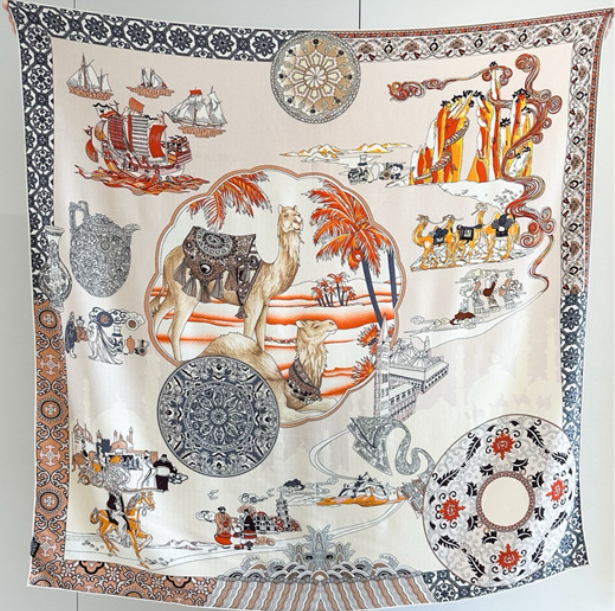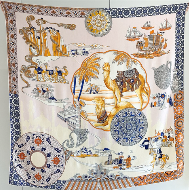 Pure 14 Momme Twill Silk Wrap Scarf Bandanna character Print Square Shawl 35’’