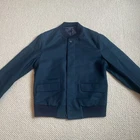 The Alexander McQueen Men's Navy Bomber Jacket is a stylish and sophisticated addition to any man's wardrobe. Made from high-quality cotton, this short-length jacket features a classic bomber style with a band collar and button closure. Designed in Italy, this pre-owned jacket in size 48 offers a regular fit for a timeless and versatile look. Fits as a medium. Perfect for those who appreciate quality craftsmanship and attention to detail, this navy jacket is ideal for both casual and formal occasions. To care for this jacket, dry clean only to maintain its pristine condition.