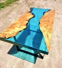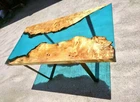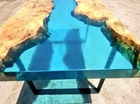 Luxury Blue Clear Epoxy Coffee Table Top, Epoxy Wooden Solid Furniture Decors