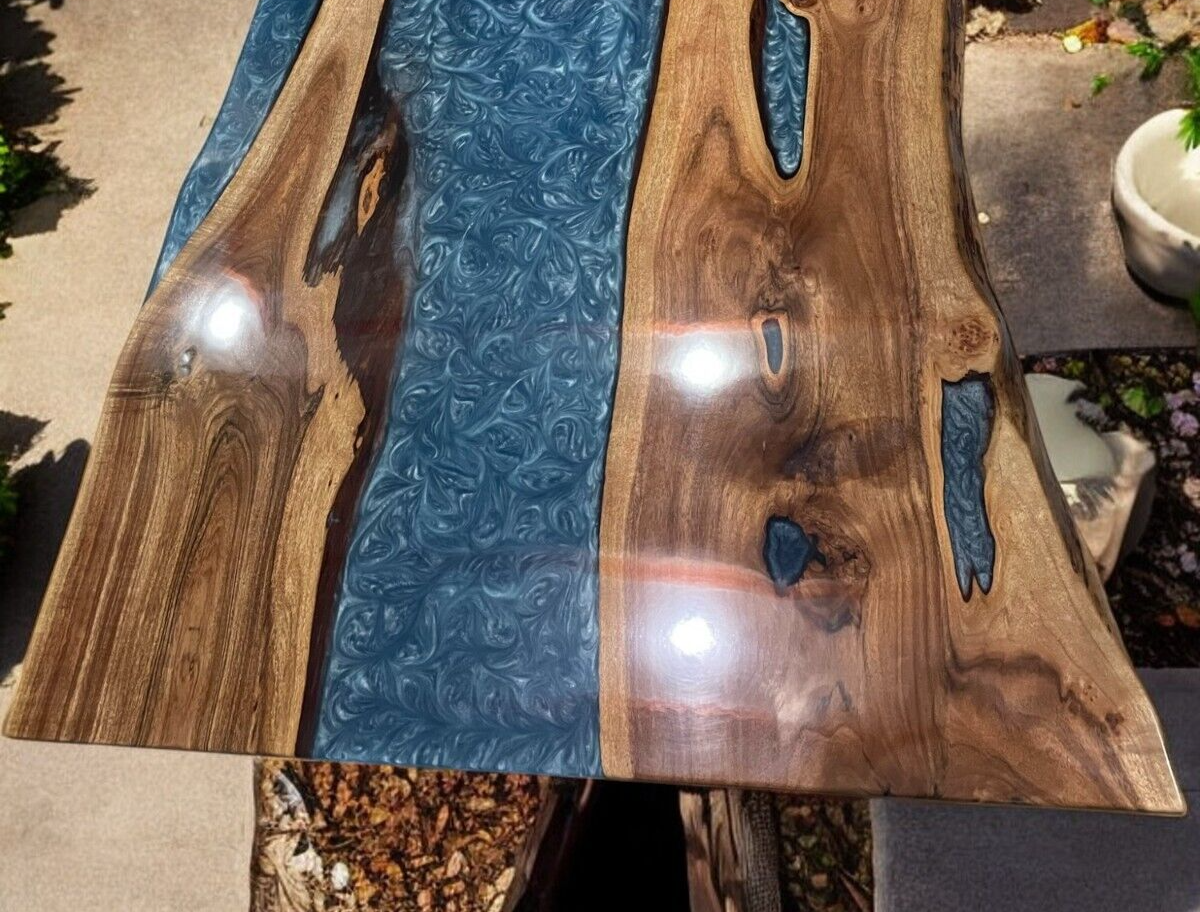 Table Top Size: 36"x24" Inches Our epoxy tables are custom-made, and we strive to use the same type of wood as depicted in our advertising pictures. However, it is not always possible to find an exact match, which may result in slight variations in the epoxy color and wood grain pattern. It's important to keep in mind that the table you receive may not be an exact replica of the advertising picture. We ensure that our clients are informed of every step of the process, from the selection of the wood to the final finish of the table. We keep our clients up-to-date throughout the process to ensure transparency and avoid any misunderstandings. Additionally, our price includes air delivery right to your doorstep via DHL/Fedex / UPS and insurance protection. Please note that you may be responsible for paying any applicable tax and duty on delivery. If you have any concerns or doubts, we highly recommend addressing them before making a purchase. Clearing any doubts beforehand will help avoid any issues and ensure a smooth buying process. It's important to note that any accessories depicted in the advertising images, such as knives, chairs, or lighting, are not included with the product and are only used for photography purposes. Additionally, please keep in mind that the price of the product does not include any type of legs. If you would like legs included, we can provide them for an additional cost. We recommend addressing any questions or concerns before making a purchase to avoid any misunderstandings.