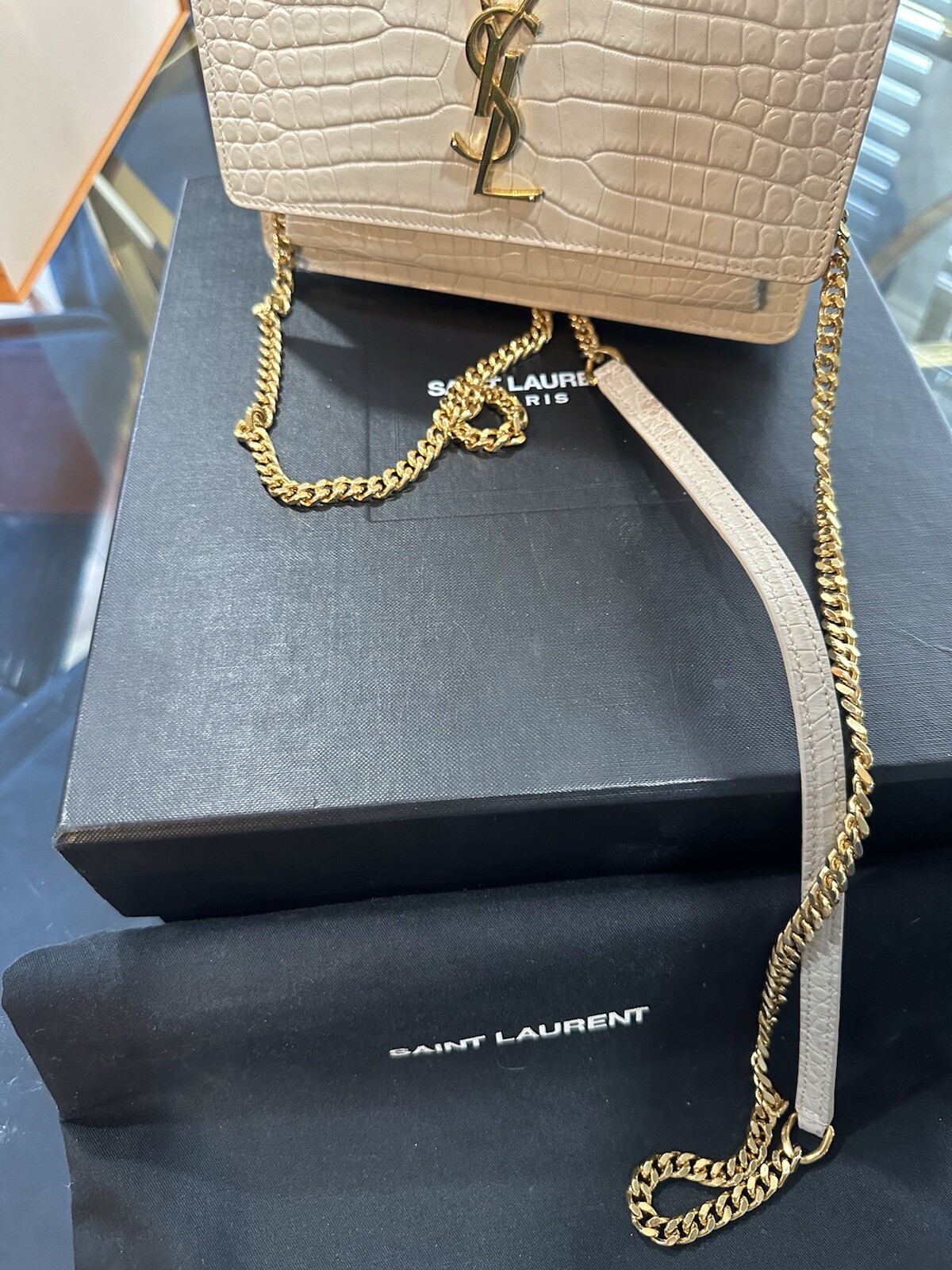Calfskin Crocodile Embossed Cassandre... . Condition is Pre-owned. Shipped with USPS Priority Mail.