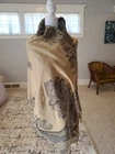Experience the luxurious warmth and elegance of this Cashmere Wool Shawl. Crafted with the finest wool, this shawl is an exemplary piece of art that doubles as a functional accessory. Its geometric pattern and golden hue make it a versatile addition to any winter wardrobe, perfect for draping over your shoulders or wrapping around your body for an extra layer of comfort. This item is used, however I did dry clean it prior to listing. Not just a fashion statement, this shawl serves multiple purposes, from a chic meditation wrap to a cozy winter blanket. The oversized design ensures coverage and warmth during the cooler months of fall, winter, and spring. With its timeless style, unisex appeal, and artisanal quality, this handmade shawl is a unique and stylish addition to any collection. 65 long 27 wide.