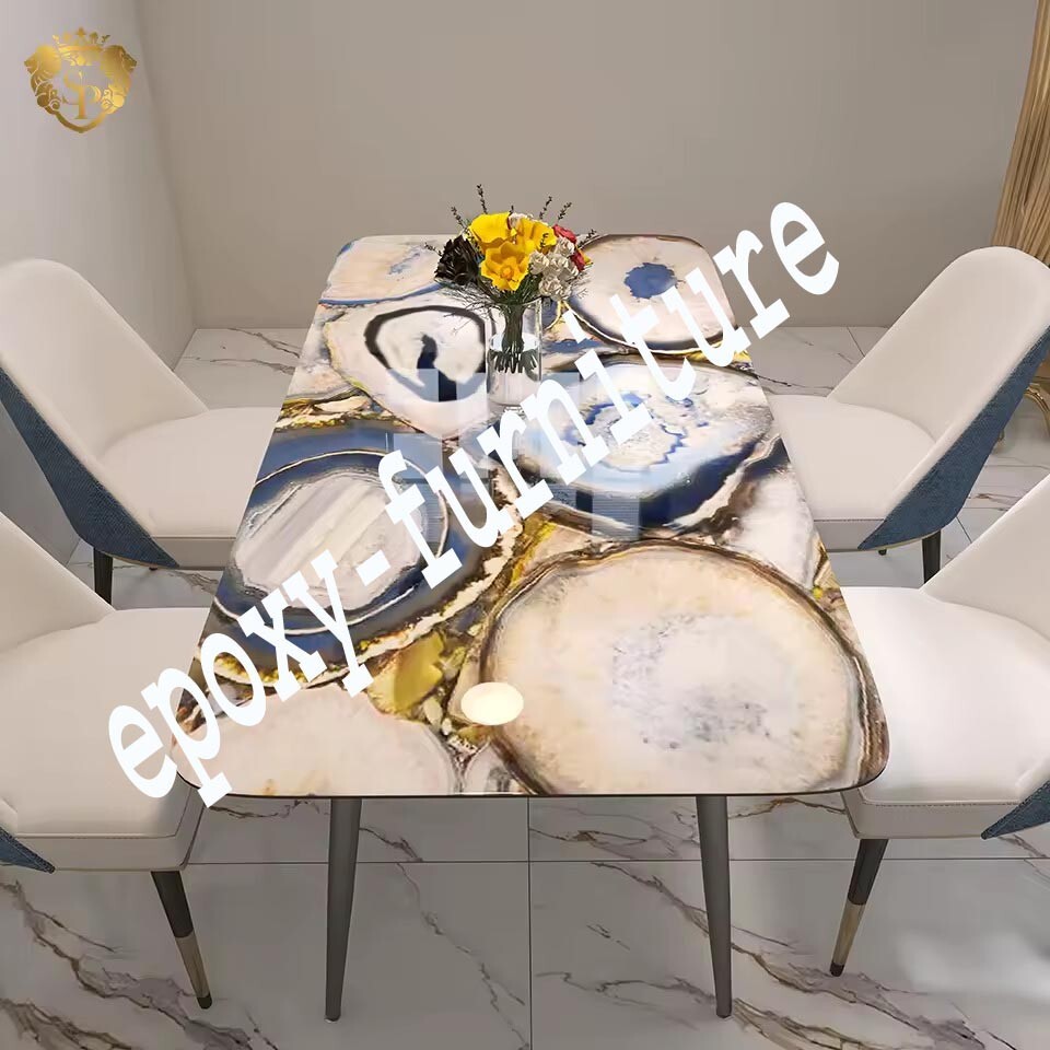 This product is a rectangular-shaped dining table made of natural blue agate stone. The tabletop is 20-30 mm thick and polished to a high shine. It can be used as a vanity counter top slab or as a kitchen and dining countertop decor. The table is fixed and does not have any drawers. It is an original handmade product from India and requires no assembly. The agate stone handle finish adds to the table's art deco style. It is suitable for indoor and outdoor use and can be personalized. Key Features: Artistic Design : Each table top is a one-of-a-kind masterpiece, showcasing the vivid and swirling hues of agate in its natural form. the uniqueness of a agate table top—a timeless fusion of natural allure and refined craftsmanship that elevates any space with its unparalleled charm and beauty." Durable Construction: The tabletop is made from high-quality wood, providing a sturdy foundation for daily use. The agate stone not only adds a natural finish but also ensures longevity and protection against scratches and wear. Versatile Decor : Whether you have a modern, eclectic, or bohemian decor style, this table seamlessly fits into various settings. It's perfect for living rooms, dining areas, offices, or as a unique addition to your studio. Easy Maintenance : The item requires no additional parts or tools for assembly and can be easily cleaned with a damp cloth. Customizable Options : We understand the importance of personalization. Contact us to discuss custom color options, sizes, or specific design elements to ensure your table suits your unique taste and space requirements. Specifications: Very unique Art by Indian Artist ,Coffee/Side Table top Used Material: Natural Agate Stones Arts Size: 48"x30" Inches Color: As Photos Shape: Rectangle Pattern: Handmade Room: Bedroom, Dining Room, Hallway, Home Office/Study, Kid’s Bedroom, Kitchen, Laundry/Utility Room, Living Room,Patio, Playroom Packaging: Wood & Foam Export Packing Shipping: Air Shipping and Packaging: Note:- This is Only table top/ Slab , Leg /base is not included , If you have any kind of query ,please message us * We can make the table top similar to this as it is handmade or natural process you will not get the same as shown in picture but you will get the similar one * The table top is made in Agra India & fully handmade. * The top will be delivered by FedEx or DHL free of cost door to door. * If there is any local tax, custom duties or Vat will be paid by the buyer at the destination. * The parcel is dispatch with proper packing & fully insured covering all kind of risk. Thanking You.....