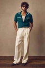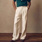 Orvis Men's Classic Linen Pants 40x29 Khaki Flat Front Cuffed