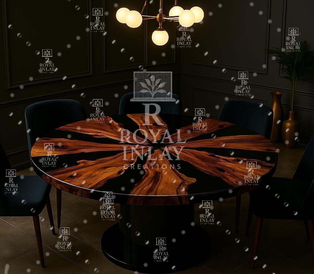 Sunburst Round Resin Tabletop – Handmade Black Epoxy and Wood Center Table – Artistic Starburst Pattern Coffee Table – Custom Wood Resin Round Table – Modern Statement Furniture – Luxury Gemstone-Inspired Resin Design – Royal Inlay Tabletop – Designer Black Resin Decor – Bold Sculptural Coffee Table 📜 Description: Sunburst Round Resin Table – Artisan Statement Table with Radiating Natural Wood This show-stopping round table brings a celestial energy to your space. Crafted with dramatic black resin and radiating streaks of warm wood, the sunburst design echoes the power of nature and the artistry of the handmade process. A bold and grounding centerpiece for luxury homes and stylish lounges. 🔷 Product Features : Material : Black epoxy resin with rich hardwood Design : Circular tabletop with starburst wood inlay pattern Finish : Glossy, durable, and easy to clean Type : Custom round resin and wood coffee table Color : Black base resin with golden brown wood rays Craftsmanship : Hand-laid starburst design for a dynamic finish 💎 Why Choose This Table? This table is a perfect blend of drama and elegance. The sunburst layout radiates warmth and movement, perfect for adding architectural energy to minimal or modern interiors. 📐 Dimensions : (Custom sizing available upon request) Example Size: 40” diameter x 1” thickness 🌟 Perfect For : Upscale Living Rooms Modern Luxury Lounges Designer Coffee Corners Art Galleries & Foyers Contemporary Wood Decor Lovers 🚚 Shipping & Customization : Packed securely for international shipping Custom wood tones and resin colors available Every piece is one-of-one craftsmanship 📝 Special Notes : Customs duties and import taxes in the destination country are the responsibility of the buyer. Base/Stand is not included with the table top. 🔍 SEO Search Keywords : sunburst coffee table, round resin inlay table, handmade starburst wood resin, luxury black epoxy table, artistic coffee table, modern wood round table, gemstone inspired resin, custom resin wood table, designer resin top decor, statement living room table