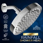 DELUXE RAINFALL SHOWER HEAD: This luxury bathroom rain shower head has an extra large 6” diameter and makes the perfect upgrade for any bathroom. Wash away the and grime of the day in a cleansing deluge of steamy water. A relaxing spa-quality experience at home! TOOL-FREE INSTALLATION: Our universal shower head connects quickly and easily to any standard shower arm with no tools needed. Use the free Teflon tape and water filter for the perfect 5 minute installation. Easy to remove Water Restrictor included for water conservation SELF CLEANING, ANTI-CLOG NOZZLES: With 90 high power jets, our deluxe shower head is designed to be self cleaning to avoid clogs and hard water buildup. The durable ABS Plastic and Beautiful Chrome Plating is also rustproof and BPA Free, making this an eco-friendly choice! HIGH-PRESSURE, LOW WATER USE: We’ve designed out showerheads to offer the optimal balance between great-feeling high pressure jets and optimal water flow rates. With a maximum outflow of 1.8 or 2.5 gallons per minute - our shower heads maximize pressure and water usage. ADVANCED 30 DAY : At Exclusive Home Goods, we pride ourselves on providing only the best in high-quality products. Your happiness and satisfaction are our top priority - if you're not happy or it arrives damaged, let us know and we’ll provide a or .
