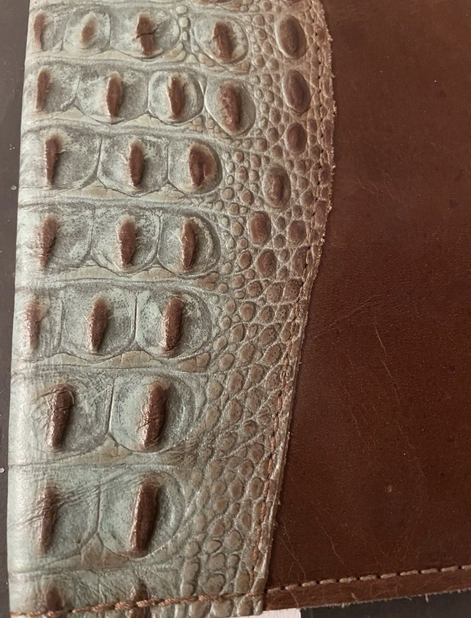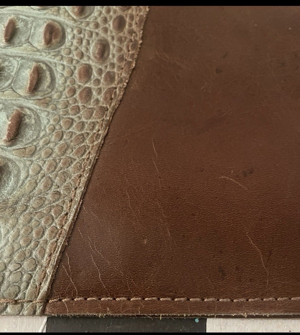A Rare Find: Authentic Exotic Luxury for Your Daily Notes. This isn't an embossed print—this is a genuine crocodile skin spine paired with thick, premium full-grain leather. Designed for the discerning collector or professional who appreciates the weight, texture, and prestige of real exotic hides. The Material & Craftsmanship: • Genuine Crocodile Spine: The spine features authentic hornback crocodile skin with distinct, raised osteoderms (the "armor" of the croc). The scales show beautiful natural variation and a unique weathered sage finish. • Premium Base Leather: The body is crafted from a rich, heavy-weight chocolate brown leather that is supple yet sturdy enough to protect your journals for a lifetime. • Hand-Finished Detail: Expertly stitched with heavy-duty thread and finished with a classic rounded-corner design. Functional Luxury: • Integrated Pen Loop: Securely holds your fountain pen or rollerball. • Business Card Pocket: A precision-cut interior slot for your ID or cards. • Refillable Design: Designed to be your "forever" cover. Simply slide in a new A5 or standard notebook when you've filled the pages.