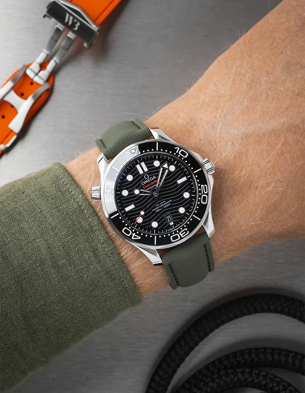 Luxury Sailcloth Rubber Watch Strap βοΈπ β Quick-Release, Waterproof (18β22mm) Give your watch a premium, sporty upgrade with this luxury sailcloth-look rubber strap . It combines the rugged texture of canvas sailcloth with the comfort and durability of performance rubberβperfect for daily wear, workouts, and weekends. The quick-release pins let you swap straps in seconds (no tools!), and the stainless buckle keeps everything secure. Great match for divers, chronographs, and field watchesβ fits any watch with the correct lug width (popular sizes 18/19/20/21/22mm ). ππβοΈ Key Features & Benefits β Sailcloth style, rubber comfort π§΅βπ§½ Canvas-textured exterior with a soft, flexible rubber body for all-day wear. Quick-release spring bars β‘ Slide, click, doneβchange straps in seconds without tools. Waterproof & sweat-resistant π¦ Ideal for swimming, gym sessions, and hot days. Secure stainless steel buckle π Durable hardware with a clean, premium finish. Breathable & flexible π¬οΈ Comfortable on the wrist with a smooth inner surface. Multiple sizes π Available in 18mm / 19mm / 20mm / 21mm / 22mm to fit a wide range of watches. Versatile pairing π― Complements divers and chronographs from brands like Rolex, Omega, TAG Heuer (for compatibility reference only βno affiliation). Fit & Sizing π§° Measure the lug width between the watch lugs to choose 18/19/20/21/22mm. Standard length designed to fit most wrists. Tapered profile for a sleek, balanced look under cuffs. Whatβs Included π¦ Luxury Sailcloth-Rubber Quick-Release Strap Pre-installed quick-release spring bars Protective packaging