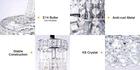 Luxury Silver K9 Crystal Chandelier 13-Lights Modern Empire Pendant Ceiling Lamp SPECIFICATION: Style: Empire Chandelier Color: Chrome Material: Metal, Crystals Crystal layer: 6 layers Crystal shade color: Clear Size after installation: Dia 24 inch * height 53 inch (Max-Length is Adjustable) Chian Length: 17.7 inch, Adjustable Voltage: 110V Light Source: E14 *13pcs (excluding light source) Light Bulb Type: Incandescent,LED,CFL etc Suitable Room Styles: Modern Antique Vintage WARM TIPS: WE SUGGEST INSTALLATION BY A PROFESSIONAL TECHNICIAN. 1. Please check the dimensions before ordering, just to ensure it is suitable for your room. 2. Please check carefully the installation instructions before you are ready to install the chandelier. 3. Ensure the fixture is disconnected from mains power before installation. Payment Delivery details Return Contact us About us Payment 1.We accept PayPal,G Pay Credit Card,Visa ,etc. payment. 2. Please make payment within 4 days after placing an order, or eBay will automatically open an unpaid case on the fourth day. 3. You can contact us for sure if you want to cancel the order to avoid the unpaid case. Delivery details Your goods will be shipped within our handling time after your full payment. Pls note that we don't ship to Alaska, Hawaii and Puerto Rico.APO/FPO’s address. Return We accept return within 30 days, but we are not responsible for human damage.The return shipping cost is the buyer's responsibilities and try to keep it in your original package. Contact us If you have any questions please contact us through "Ask seller a question" link. We will respond within 2 business day or less. About us We are committed to providing you with a comfortable home and by functional and beautiful ceiling fans and lighting fixtures. As a professional modern lighiting fixture supplier, our team has more than 15 years Ceiling fan and lighting production experience. We are not only committed to produce high-tech, stylish, safe and high quality LED products, but also provide our professional and efficient after-sales service, making your lighting experience more pleasant and comfortable.