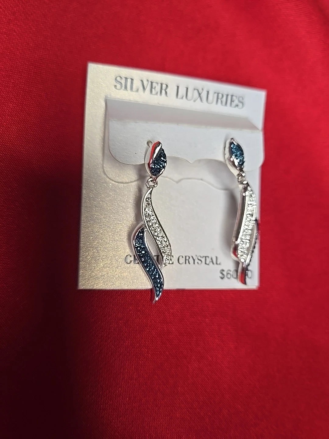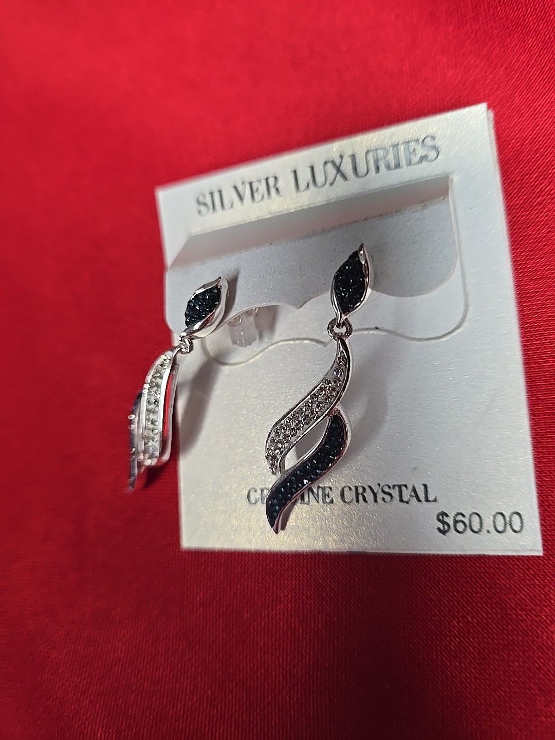 These Silver Luxuries Earrings are a luxurious addition to any jewelry collection, featuring genuine crystals in a variety of colorful hues. The fine silver plating adds an elegant touch to the dangle/drop style, making them a standout accessory. With a very good cut grade and a brand known for quality craftsmanship, these earrings are sure to make a statement on your lobe. Seller owned.