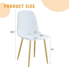 ✨ Key Features That Stand Out Timeless White & Gold Aesthetic : Crisp white PU leather seats pair seamlessly with glossy golden metal legs, creating a luxurious visual contrast that complements any interior style—from modern minimalist to industrial chic and traditional decor. It’s a classic color combo that never goes out of fashion! Integrated Molding Structure : One-piece backrest and seat cushion design delivers a sleek, smooth appearance while significantly boosting stability. No disjointed parts—just a cohesive look and reliable support. Cross Reinforcement for Maximum Durability : Hidden cross-bracing under the seat enhances structural integrity, upgrading load-bearing capacity to ensure long-lasting use for years to come. Integral Metal Leg Architecture : Solid one-piece metal legs eliminate excessive splicing, offering unmatched stability. The radiant golden finish adds a touch of opulence that elevates any space. Premium Comfort : High-resilience PU leather upholstery provides a soft, supportive seating experience—perfect for long meals or gatherings with friends and family. Effortless Assembly : Each set includes detailed, easy-to-follow instructions. Most users can assemble a chair in just 15-20 minutes—no professional tools needed! 📐 Product Specifications Item Details Assembled Dimensions (L×W×H) 17.00 × 15.30 × 34.50 inches Product Weight (per chair) 8.38 lbs Package Dimensions 29.53 × 25.20 × 18.70 inches Package Weight 44.09 lbs Material Premium Metal & PU Leather Color White + Gold 🛡️ Our Commitment to You We stand behind the quality of our products! Enjoy 1-Year Quality Warranty against manufacturing defects—we’ll repair or replace any faulty parts free of charge. Plus, take advantage of our 30-Day Free Return & Exchange Policy —if you’re not completely satisfied with your chairs, simply return them for a full refund or exchange, no questions asked. Note: Due to differences in monitor settings and lighting, slight color variations between the product and images are normal and not considered a defect. Perfect for dining rooms, kitchens, cafes, or home offices—this chair set brings luxury and practicality to any space. Add to cart today and transform your interior!