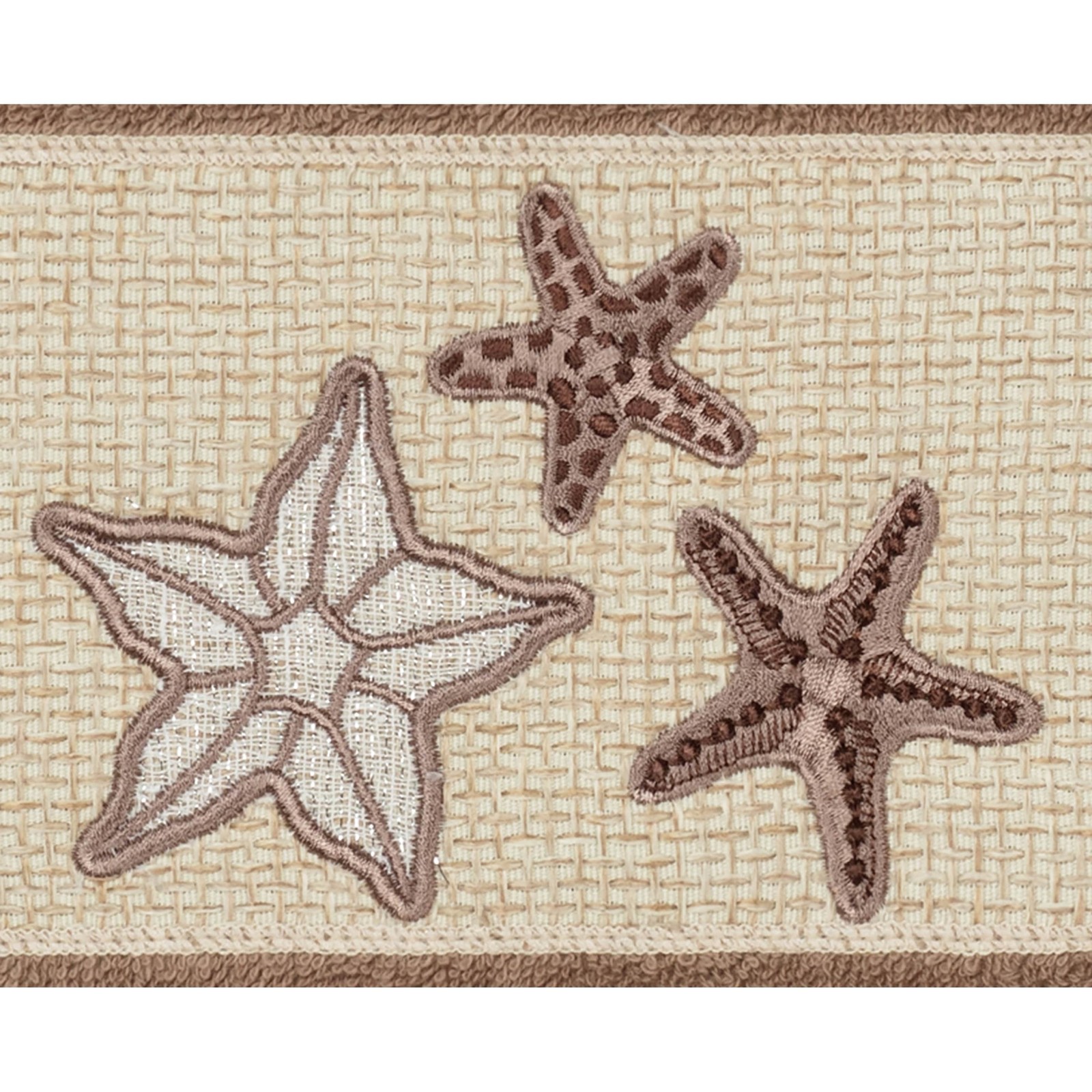 This authentic hotel and spa hand towel is made from plush, high end Turkish cotton for supreme absorbency and durability. This beautiful latte brown towel is embellished with a starfish applique and embroidery design with a textured woven border to add that special touch to your bathroom.Includes: One (1) hand towel100-percent soft and absorbent Turkish cottonEmbellished with a design in a combination of applique and embroideryThis luxurious towel is produced in a state of the art green factory in Turkey which runs on 100-percent solar energyCare instructions: Machine wash and dryMade in TurkeyDimensions: Hand towel - 16 inches wide x 30 inches longThe digital images we display have the most accurate color possible. However, due to differences in computer monitors, we cannot be Free Shipping Over $49.99* Details Authentic Hotel and Spa Latte Brown Turkish Cotton Starfish Embroidered Hand Product Description: This authentic hotel and spa hand towel is made from plush, high end Turkish cotton for supreme absorbency and durability. This beautiful latte brown towel is embellished with a starfish applique and embroidery design with a textured woven border to add that special touch to your bathroom. IncludesOne (1) hand towel 100-percent soft and absorbent Turkish cotton Embellished with a design in a combination of applique and embroidery This luxurious towel is produced in a state of the art green factory in Turkey which runs on 100-percent solar energy Care instructionsMachine wash and dry Made in Turkey DimensionsHand towel - 16 inches wide x 30 inches long The digital images we display have the most accurate color possible. However, due to differences in computer monitors, we cannot be responsible for variations in color between the actual product and your screen.