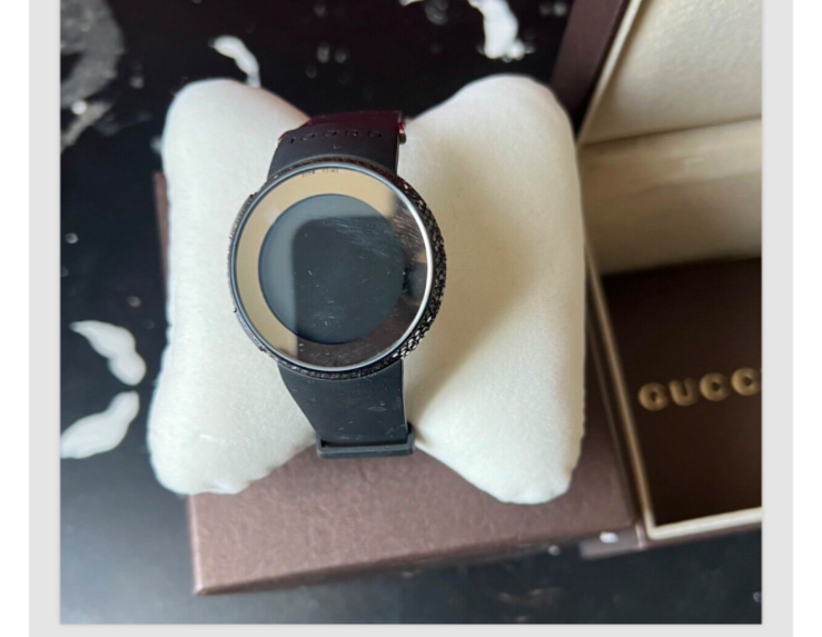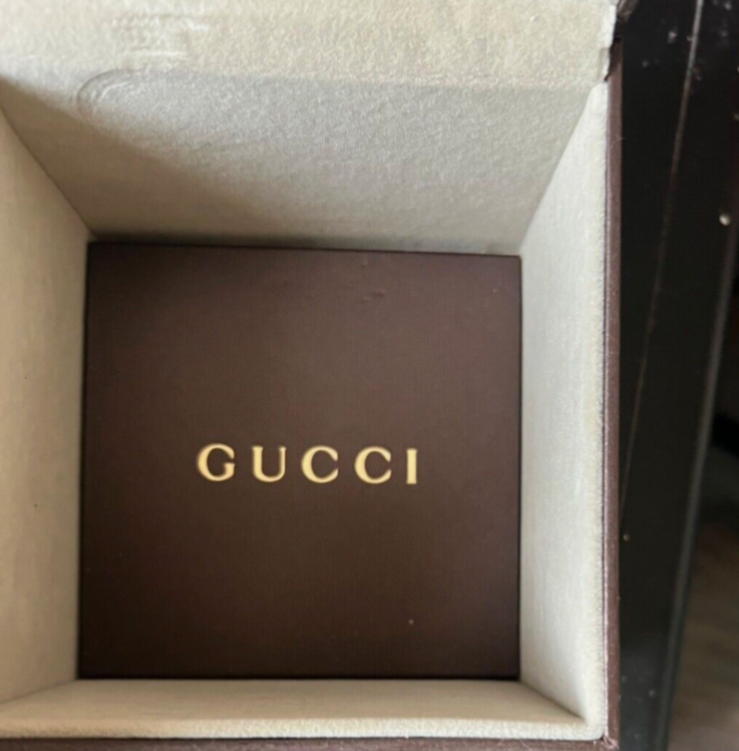 The # Luxury Gucci watch features a striking black dial with intriguing black diamond detailing. This stylish timepiece is designed for women and showcases a digital display for easy timekeeping. The watch comes complete with appraisal paperwork, adding a touch of authenticity and value to this luxurious accessory. Perfect for those who appreciate high-end designer fashion and exquisite craftsmanship in their jewelry and watches. appraised for $5500.00 comes with Gucci box appraisal and paperwork