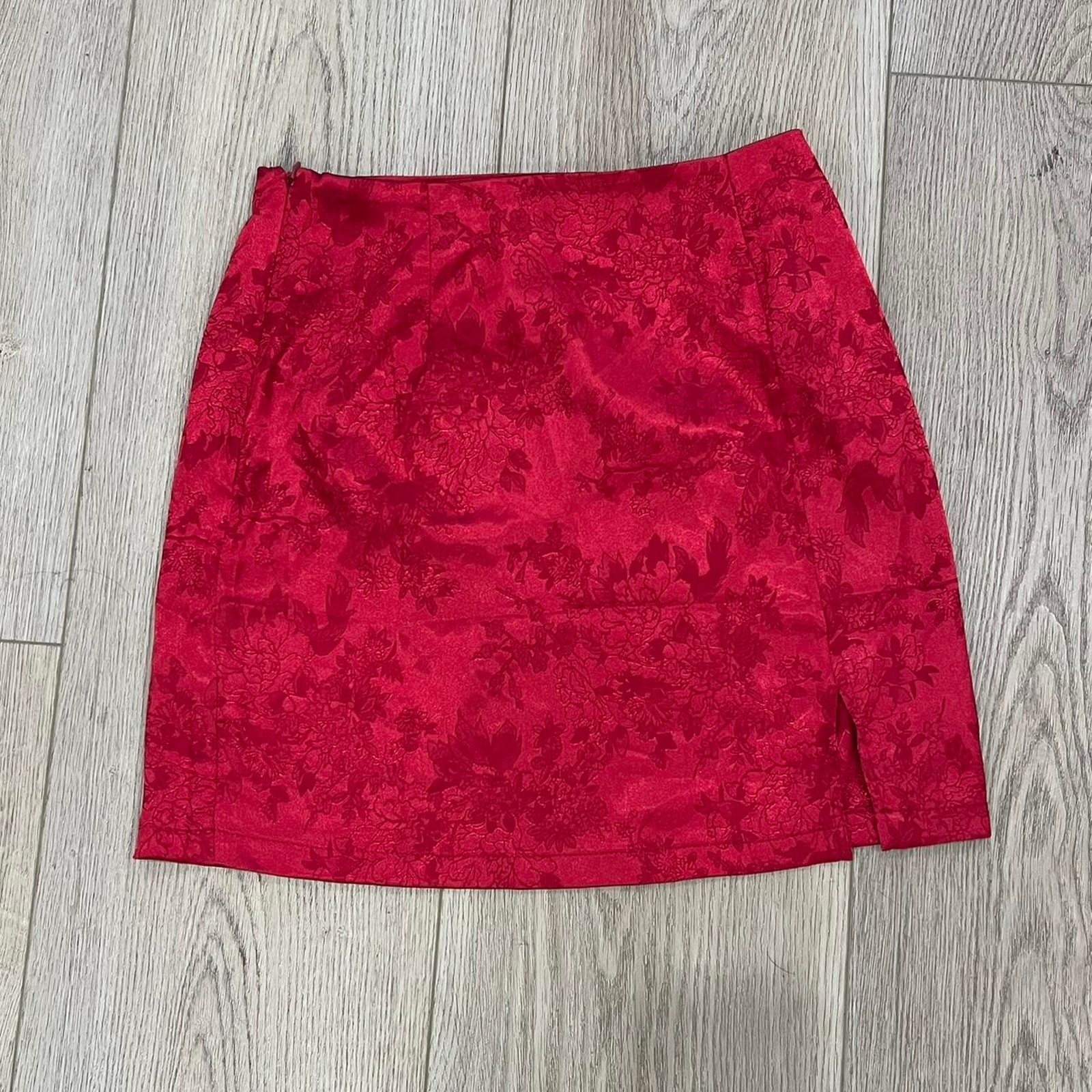 Lyaner Silky Style Red Skirt Floral Design Women’s Size Small