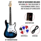 YOUR MUSICAL JOURNEY STARTS HERE | Beginner’s Guitar Set Includes a 39” CS Series Electric Guitar, Amplifier Cable, [6] Picks & Detailed Learning Guide for Novice, Intermediate & Expert Players of All Ages | Learn to Play on a Professional-Quality Instrument that Looks, Sounds, Feels & Performs Like the Real Deal with All the Accessories You Need to Get Started [Amplifier Not Included] BEAUTIFUL SOLID WOOD CONSTRUCTION | Premium Wood Guitar is Masterfully Designed for Maximum Playing Comfort, Peak Sound Performance, Lightweight Durability & Striking Appearance Including Smooth Paulownia Wood Body, Durable Rosewood Fingerboard & Polished Canadian Maple Neck | Available in a Variety of Vibrant Colors & Natural Wood Tones in Both Left- & Right-Handed Orientations RICH, DYNAMIC, TRUE-TO-LIFE SOUND | With its Classic “C”-Shaped Profile, Thick 3-Ply Pickguard, Single-Coil Pickups, Standard Truss Rod, Dot Inlays & 22-Fret Configuration, Our Vintage Guitar Strums Like a Dream, Offering the Perfect Blend of Comfort, Style & Playability | 5-Way Rhythm/Treble Pickup Switch Delivers Dynamic Response with Tones Ranging from Crisp & Bright to Smooth & Mellow SLEEK CONTROLS FOR VOLUME & TONE | Once You’ve Mastered Your Strumming, Melodies & Chord Progressions, Experiment with Different Volume Settings & Tone Intensities Via the Built-In Rotary Control Knobs | Our Fully-Loaded Guitar Also Features a Signature Headstock with Easy-Grip Locking Tuners & Tremolo Arm “Whammy” Hole to Help You Achieve Cool Vibrato & Other Genre-Defying Effects PLUG IN TO SUPERCHARGE YOUR PLAY | Go from Practice to Stage in No Time with a Dependable Output Jack & Connector Cable for Pairing with Your Favorite Amplifier | This Legendary 6-String Guitar is Primed for Solo Play, Jamming with the Band & Performing Live Indoors or Outside | Give the Gift of Music for Boys, Girls, Men & Women for Birthday, Christmas, Graduation, Holiday, Anniversary & More