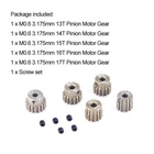 SURPASS HOBBY M0.6 3.175MM 13T 14T 15T 16T 17T Pinion Gear Set for 1/8 1/10 RC Off-road Buggy Monster Truck 3.175mm Shaft Motor Features: 1.Easy installation and long service life. 2.Hard anodic oxidation on gear surface. 3.Antirust treatment of gear surface. 4.It is suitable for brushless brushed motor of 3.175 mm axle of 1/8 1/10 RC model vehicle. Description: Metal material provide with longer life, more durable and wear-resistant. 5Pcs M0.6 3.175mm 13T 14T 15T 16T 17T Pinion Gear Set for 1/8 1/10 RC Off-road Buggy Monster Truck 3.175mm Shaft Brushless Brushed Motor. Specifications: Brand: SURPASS HOBBY Material: Metal Teeth: 13T 14T 15T 16T 17T Height: 9mm Tip diameter 13T: 9mm 14T: 9.6mm 15T: 10.2mm 16T: 10.8mm 17T: 11.4mm Suitable Shaft Diameter: 3.175mm Item Weight: 12g Package information: Package size: 9*5*1cm Package weight: 12g Poly bag package Note: Please allow 1-3mm error due to manual measurement, make sure you do not mind before you bid.