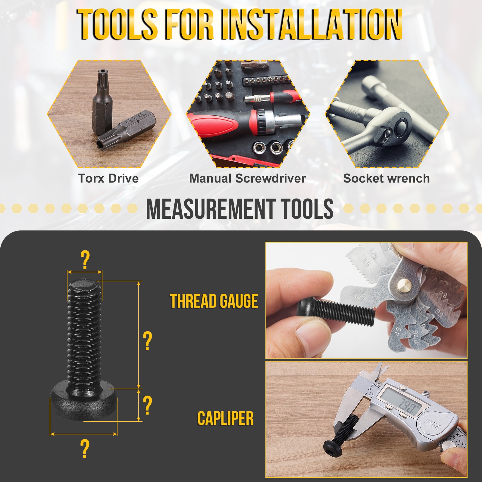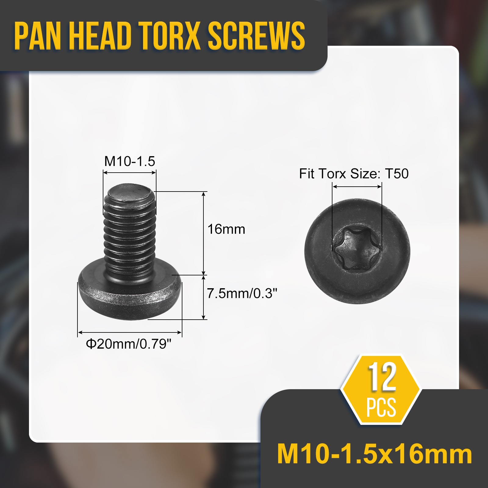 Document Product Details:Product Name: Button Torx Head Machine Security ScrewsThread Diameter: M10-1.5(Thread Dia x Pitch)Screw Length:16mmHead Size: 20x7.5mm/0.79x0.3inch(Head Dia.*H)Fit Torx Size: T50Color: BlackMaterial: Carbon SteelPackage Content: 12Pack x Pan Head Torx Screws Security Screws Bolts[Sturdy & Durable]: Torx pan head screws are made from carbon steel and provide a secure, vibration-resistant fastening. Their rugged construction provides excellent wear resistance and torque transmission, while maintaining a good grip even under stress.[Design] - Fasteners Button Torx screws innovative design, coupled with a sturdy construction. Design with a six-lobed, star-pattern screw drive that can withstand higher torque than other screw heads, meanwhile, with a smooth surface and precise thread, allows securely work without slipping. [Application]: Pan head torx screws can be applied to furniture assemblies, such as beds, tables, cabinets, and chairs, as well as woodworking projects involving the joining of wood, boards, workbenches, and kitchen countertops. Additionally, these screws are for office appliances, 3D printing, and bicycles.[Notice]: To ensure proper size, measure your existing screws with a caliper (not a tape measure or ruler) before ordering. We recommend using a precision tool to check thread diameter and head thickness. These security screws require a Torx bit for installation. M10x16mm Pan Head Torx Security Screws - 12Pack - Carbon Steel - Black Product Details: Product Name: Button Torx Head Machine Security Screws Thread Diameter: M10-1.5(Thread Dia x Pitch) Screw Length:16mm Head Size: 20x7.5mm/0.79x0.3inch(Head Dia.*H) Fit Torx Size: T50 Color: Black Material: Carbon Steel Package Content: 12Pack x Pan Head Torx Screws Security Screws Bolts [Sturdy & Durable]: Torx pan head screws are made from carbon steel and provide a secure, vibration-resistant fastening. Their rugged construction provides excellent wear resistance and torque transmission, while maintaining a good grip even under stress. [Design] - Fasteners Button Torx screws innovative design, coupled with a sturdy construction. Design with a six-lobed, star-pattern screw drive that can withstand higher torque than other screw heads, meanwhile, with a smooth surface and precise thread, allows securely work without slipping. [Application]: Pan head torx screws can be applied to furniture assemblies, such as beds, tables, cabinets, and chairs, as well as woodworking projects involving the joining of wood, boards, workbenches, and kitchen countertops. Additionally, these screws are for office appliances, 3D printing, and bicycles. [Notice]: To ensure proper size, measure your existing screws with a caliper (not a tape measure or ruler) before ordering. We recommend using a precision tool to check thread diameter and head thickness. These security screws require a Torx bit for installation. Hot Item Payment 1.We accept eBay payment . 2.Payment must be received within 7 business days of auction closing. Shipping 1.We ship to your eBay or Paypal address. Please make sure your eBay and Paypal address is correct before you pay. 2.Items will be shipped within 1-3 business day when we received payment. 3.Delivery time depends on destination and other factors. Description Policy M10x16mm Pan Head Torx Security Screws - 12Pack - Carbon Steel - Black Product Details: Product Name: Button Torx Head Machine Security Screws Thread Diameter: M10-1.5(Thread Dia x Pitch) Screw Length:16mm Head Size: 20x7.5mm/0.79x0.3inch(Head Dia.*H) Fit Torx Size: T50 Color: Black Material: Carbon Steel Package Content: 12Pack x Pan Head Torx Screws Security Screws Bolts [Sturdy & Durable]: Torx pan head screws are made from carbon steel and provide a secure, vibration-resistant fastening. Their rugged construction provides excellent wear resistance and torque transmission, while maintaining a good grip even under stress. [Design] - Fasteners Button Torx screws innovative design, coupled with a sturdy construction. Design with a six-lobed, star-pattern screw drive that can withstand higher torque than other screw heads, meanwhile, with a smooth surface and precise thread, allows securely work without slipping. [Application]: Pan head torx screws can be applied to furniture assemblies, such as beds, tables, cabinets, and chairs, as well as woodworking projects involving the joining of wood, boards, workbenches, and kitchen countertops. Additionally, these screws are for office appliances, 3D printing, and bicycles. [Notice]: To ensure proper size, measure your existing screws with a caliper (not a tape measure or ruler) before ordering. We recommend using a precision tool to check thread diameter and head thickness. These security screws require a Torx bit for installation. Hot Item Payment 1.We accept eBay payment . 2.Payment must be received within 7 business days of auction closing. Shipping 1.We ship to your eBay or Paypal address. Please make sure your eBay and Paypal address is correct before you pay. 2.Items will be shipped within 1-3 business day when we received payment. 3.Delivery time depends on destination and other factors.